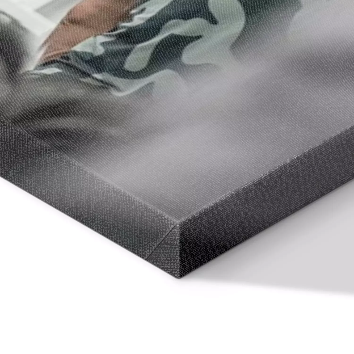 De print wordt aangebracht op hoogwaardig canvas dat op een schildersweefgetouw (spieraam) wordt gespannen. Omdat de print de zijranden bedekt, hoeft het ontwerp niet met een extra kader te worden omlijst. Wij raden ook composities aan die uit meerdere foto's bestaan en zo een coherente compositie vormen.