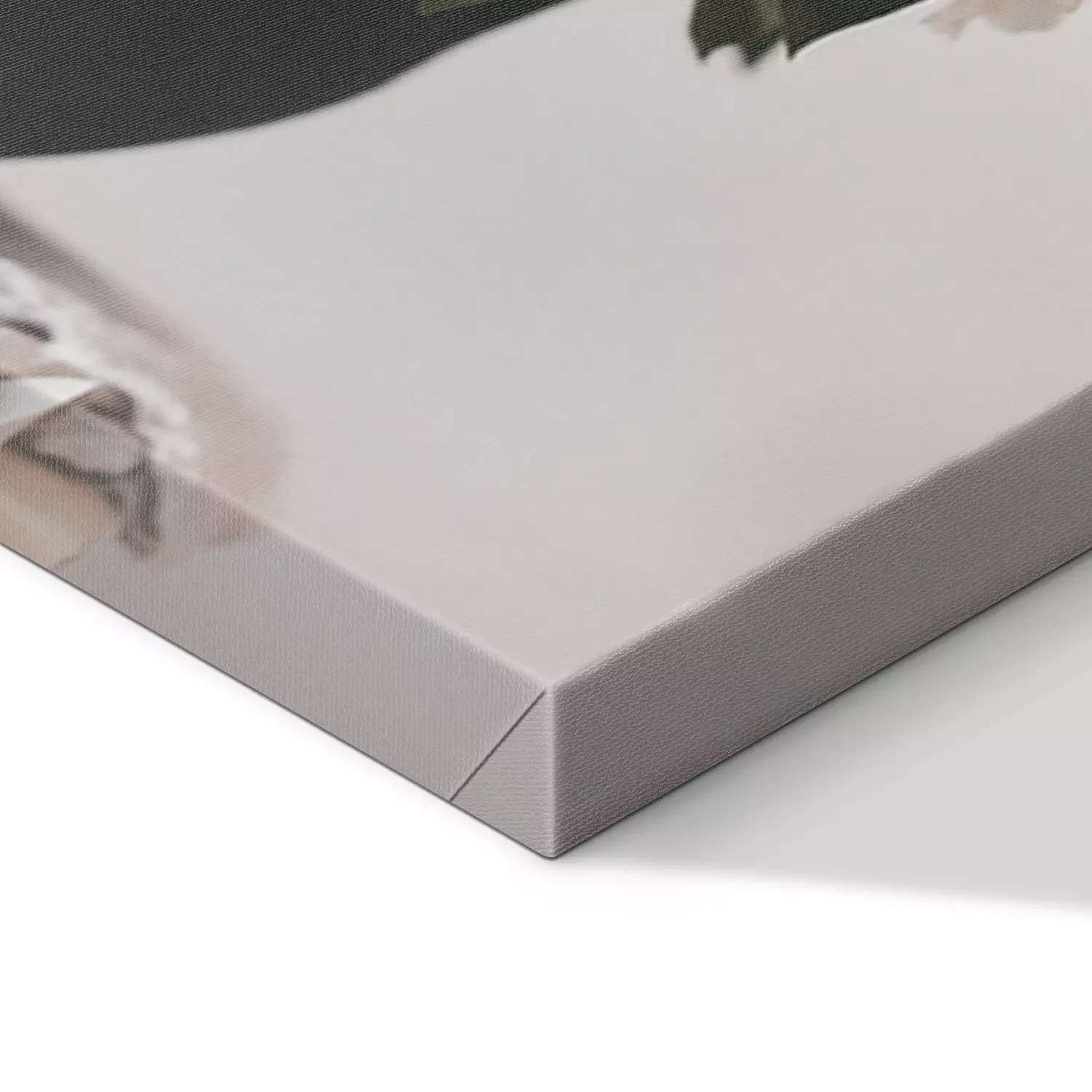 De print wordt aangebracht op hoogwaardig canvas dat op een schildersweefgetouw (spieraam) wordt gespannen. Omdat de print de zijranden bedekt, hoeft het ontwerp niet met een extra kader te worden omlijst. Wij raden ook composities aan die uit meerdere foto's bestaan en zo een coherente compositie vormen.