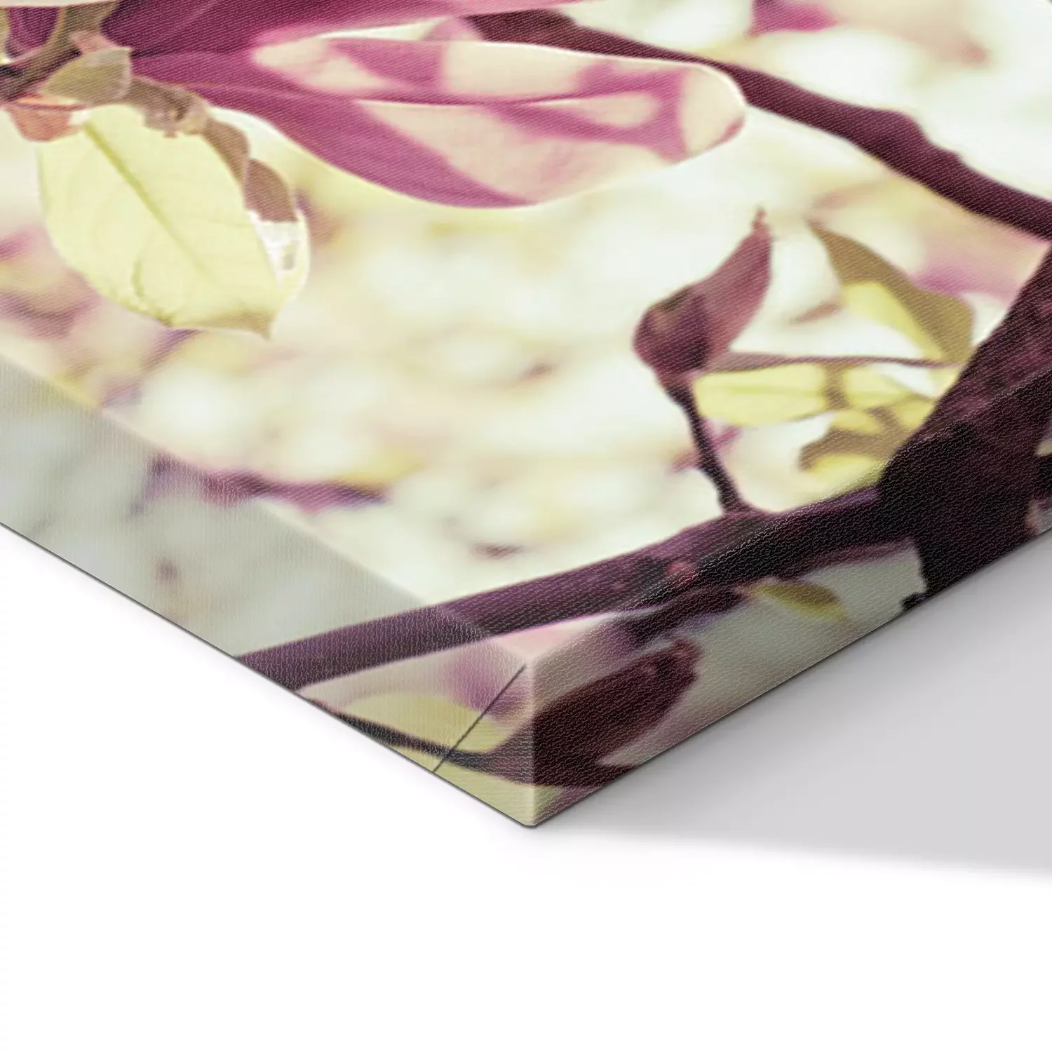De print wordt aangebracht op hoogwaardig canvas dat op een schildersweefgetouw (spieraam) wordt gespannen. Omdat de print de zijranden bedekt, hoeft het ontwerp niet met een extra kader te worden omlijst. Wij raden ook composities aan die uit meerdere foto's bestaan en zo een coherente compositie vormen.