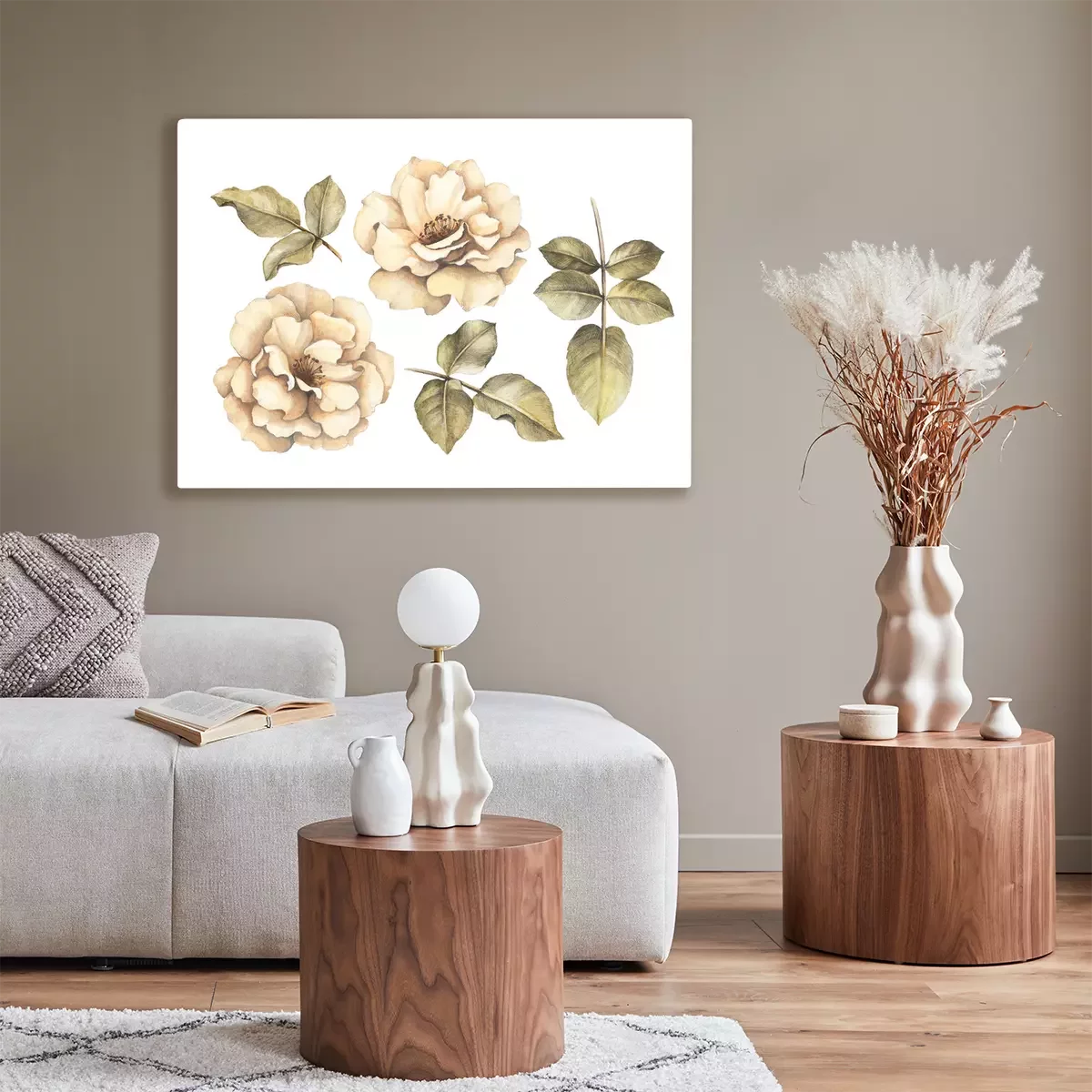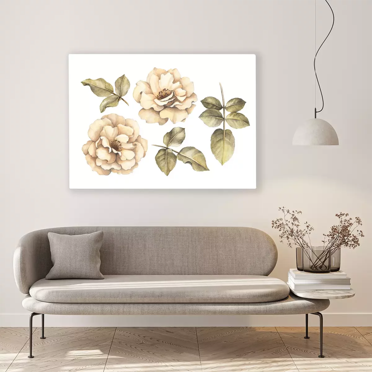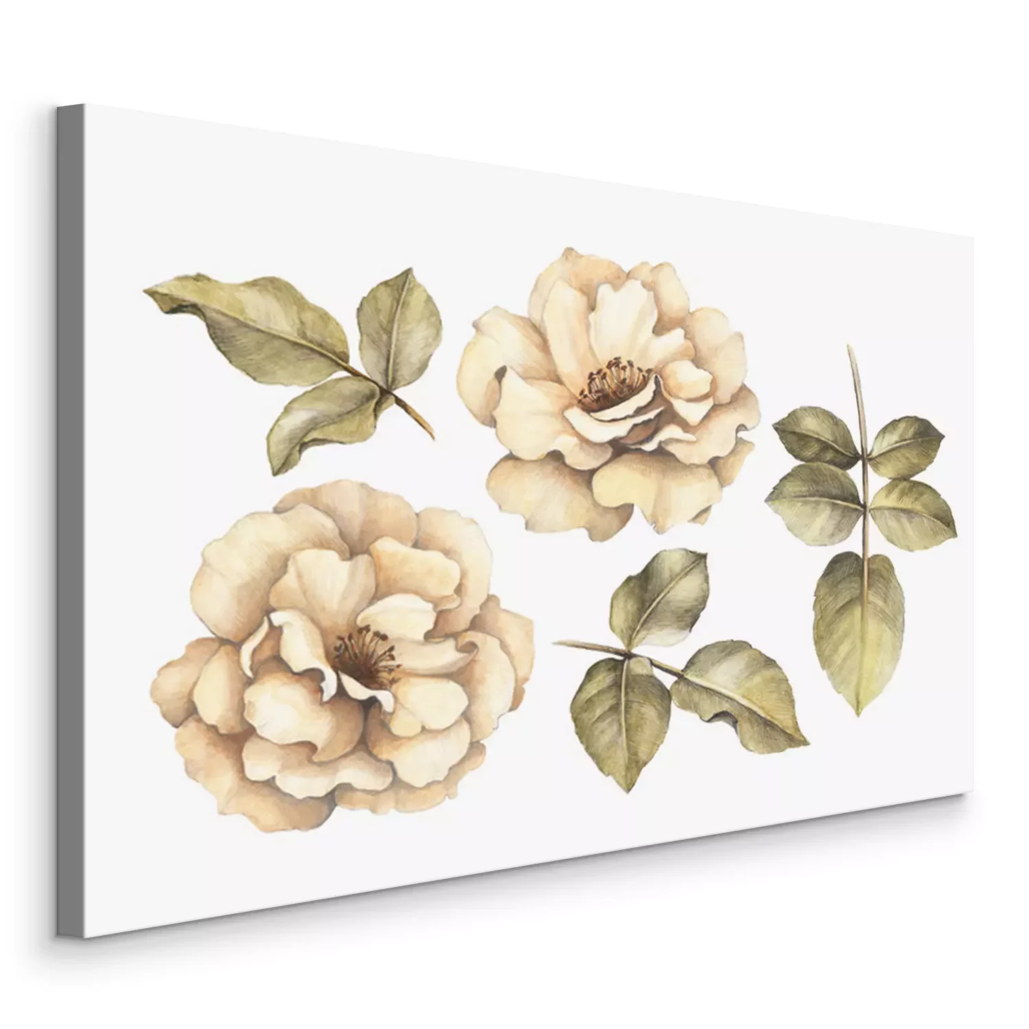 Canvas: Subtiele rozen met bladeren