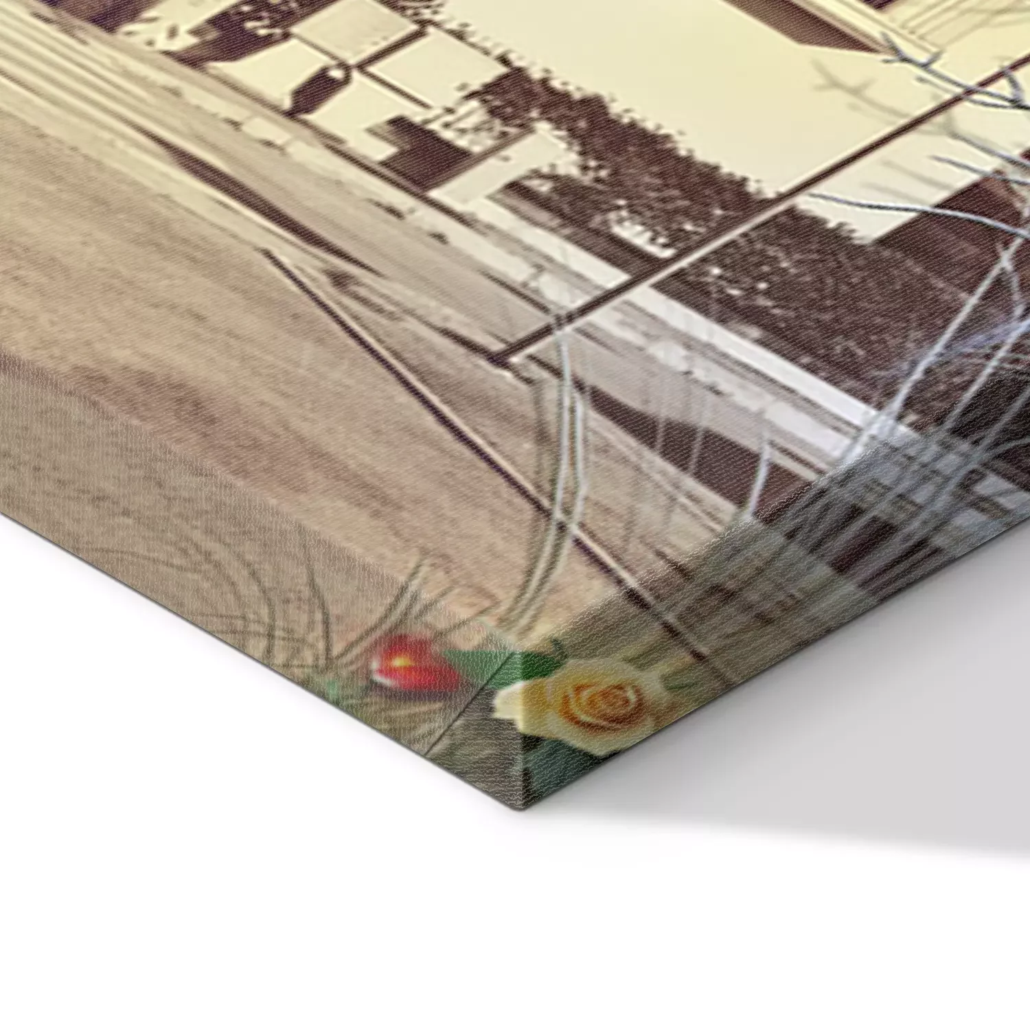 De print wordt aangebracht op hoogwaardig canvas dat op een schildersweefgetouw (spieraam) wordt gespannen. Omdat de print de zijranden bedekt, hoeft het ontwerp niet met een extra kader te worden omlijst. Wij raden ook composities aan die uit meerdere foto's bestaan en zo een coherente compositie vormen.