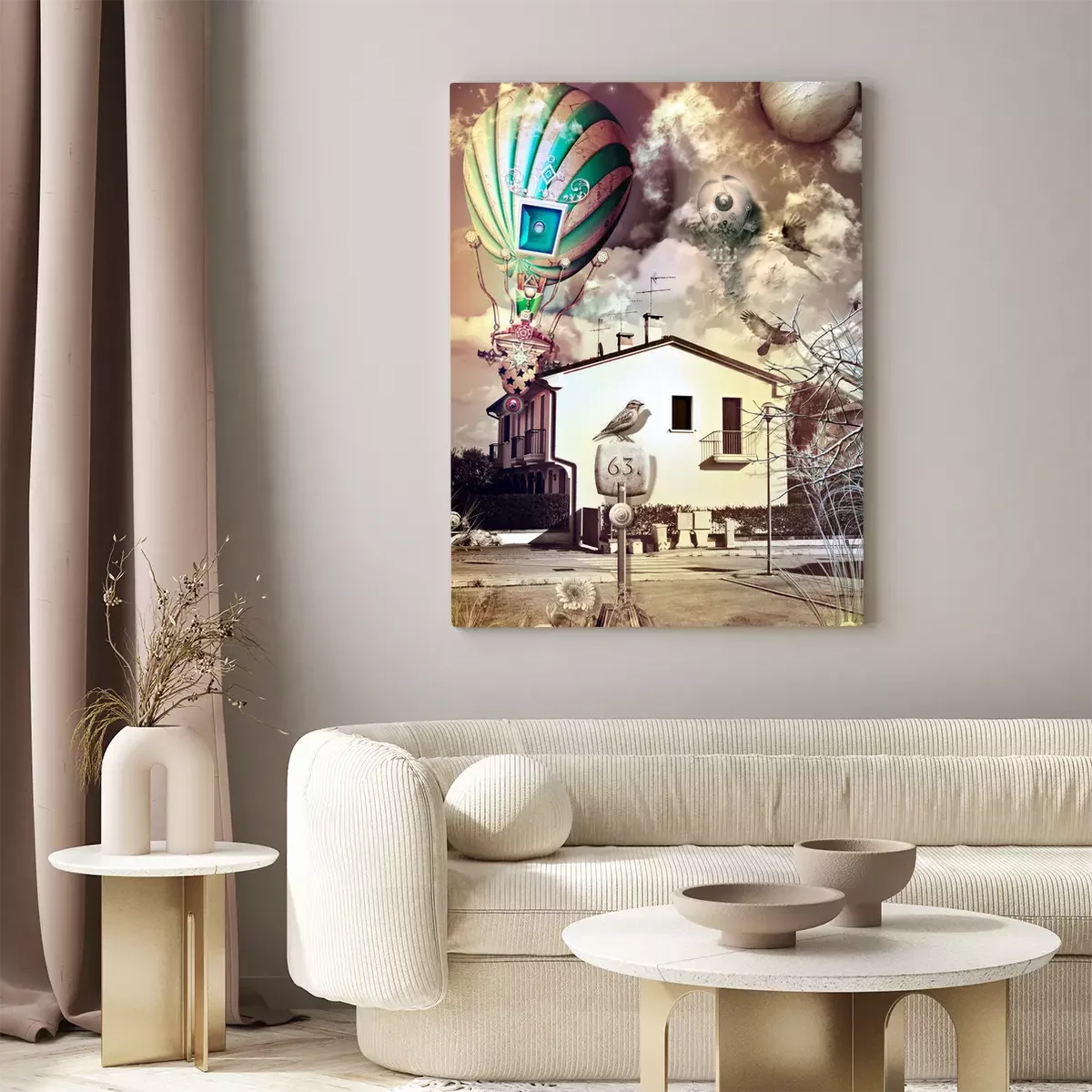 Canvas: Suburban fantasie met vuur ballon