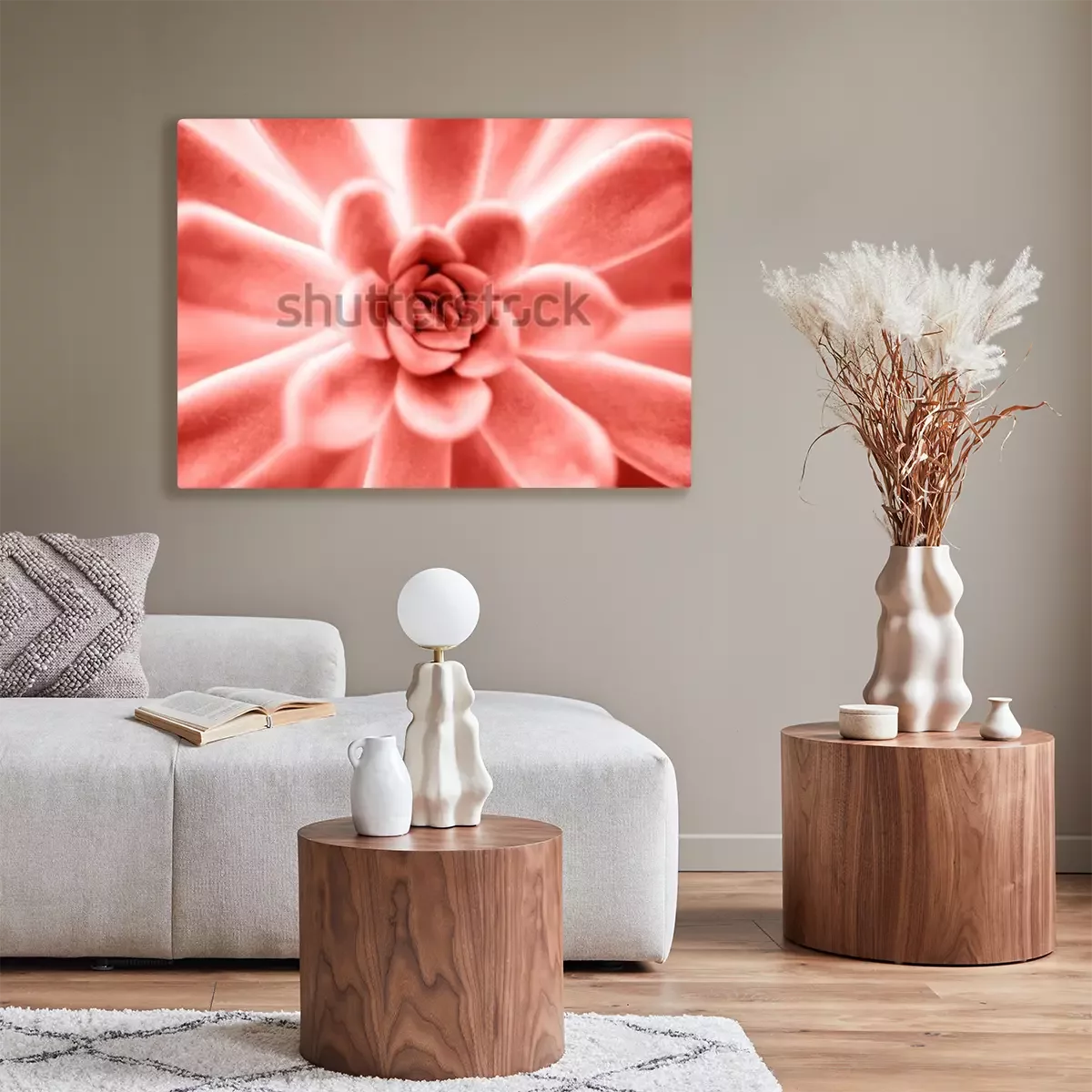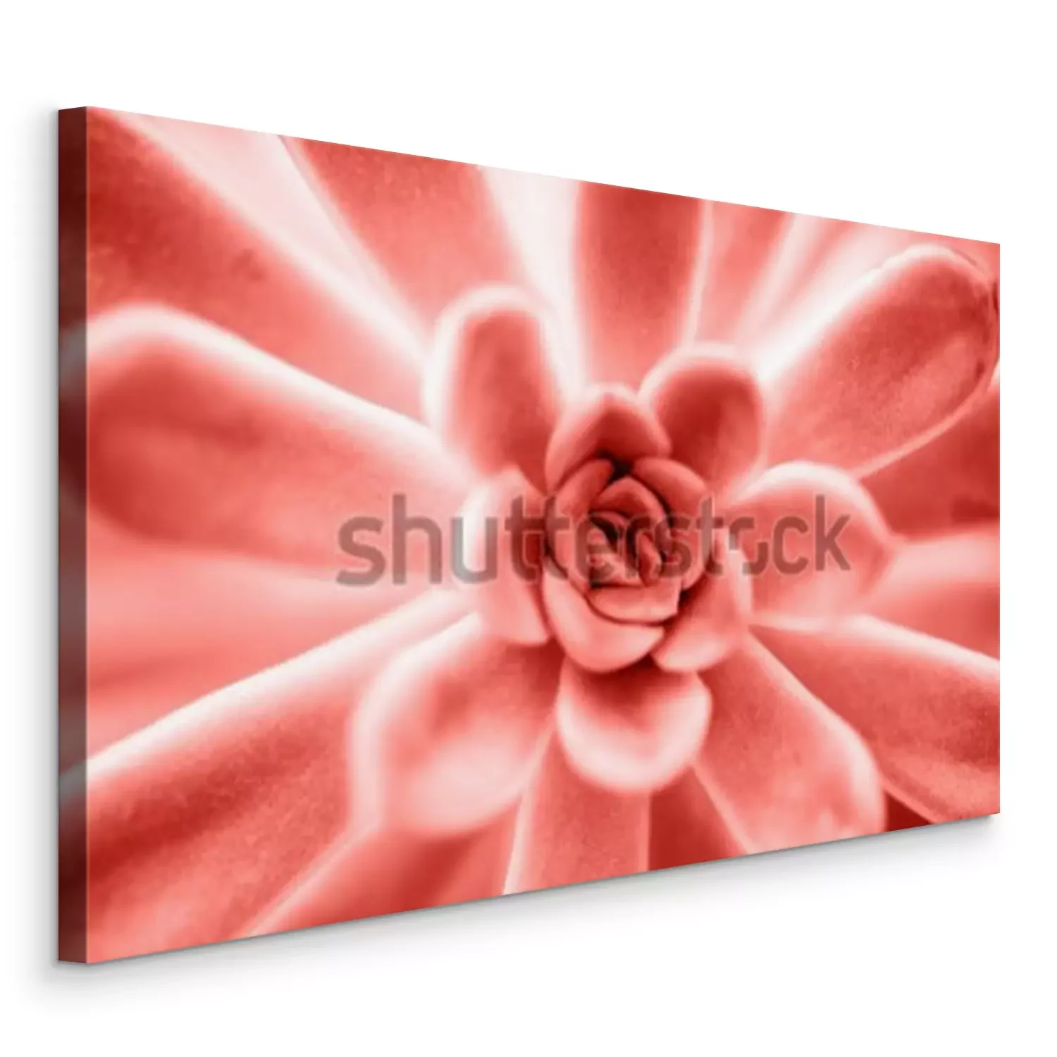 Canvas: Succulente installatie in het Leven de dichte omhooggaande achtergrond van de koraalkleur. Pantonekleur van het jaar 2019-concept.
