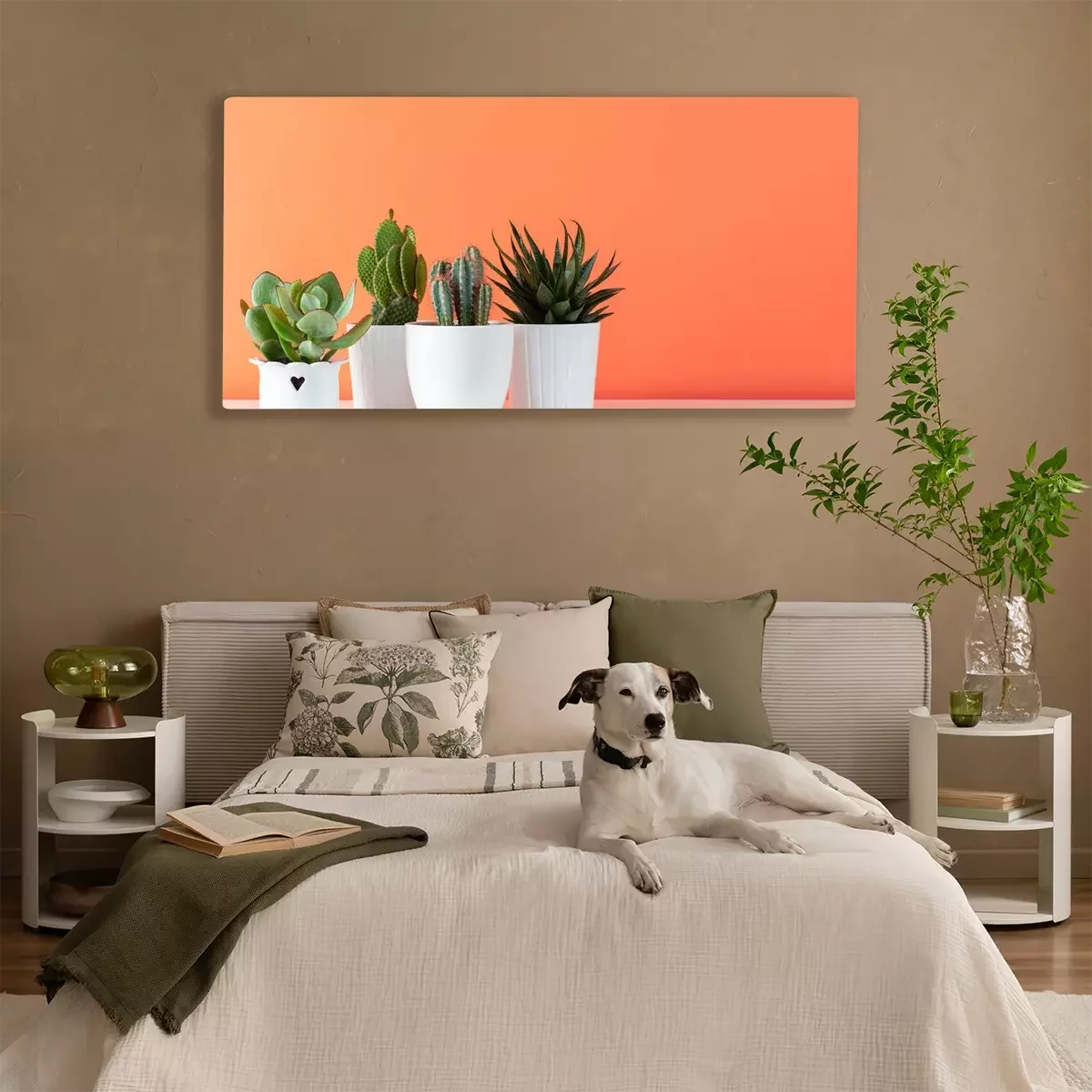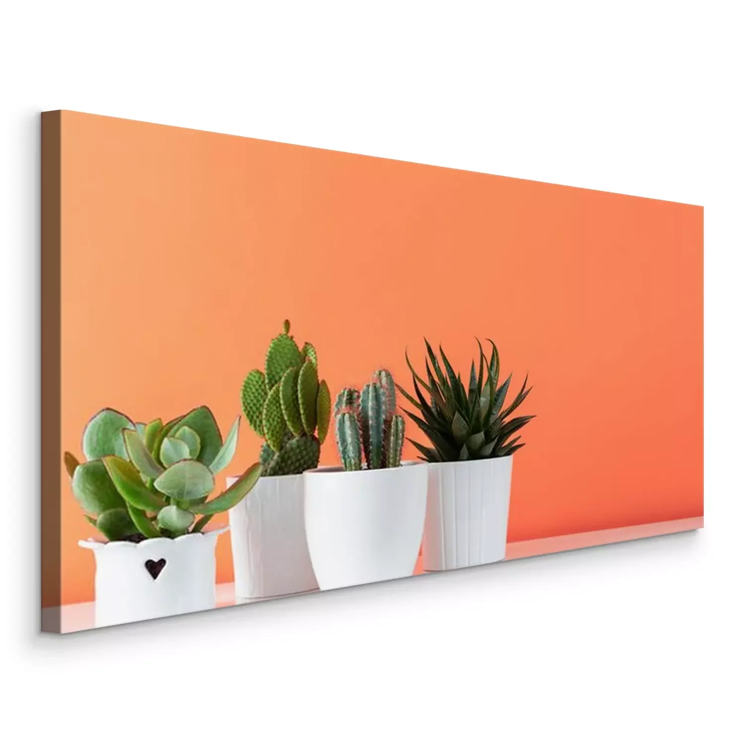 De print wordt aangebracht op hoogwaardig canvas dat op een schildersweefgetouw (spieraam) wordt gespannen. Omdat de print de zijranden bedekt, hoeft het ontwerp niet met een extra kader te worden omlijst. Wij raden ook composities aan die uit meerdere foto's bestaan en zo een coherente compositie vormen.