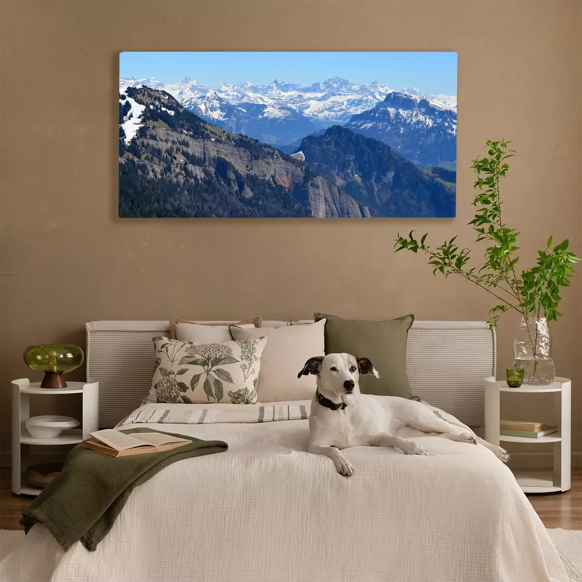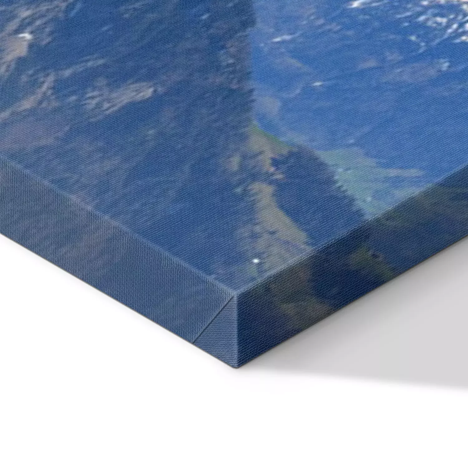 De print wordt aangebracht op hoogwaardig canvas dat op een schildersweefgetouw (spieraam) wordt gespannen. Omdat de print de zijranden bedekt, hoeft het ontwerp niet met een extra kader te worden omlijst. Wij raden ook composities aan die uit meerdere foto's bestaan en zo een coherente compositie vormen.