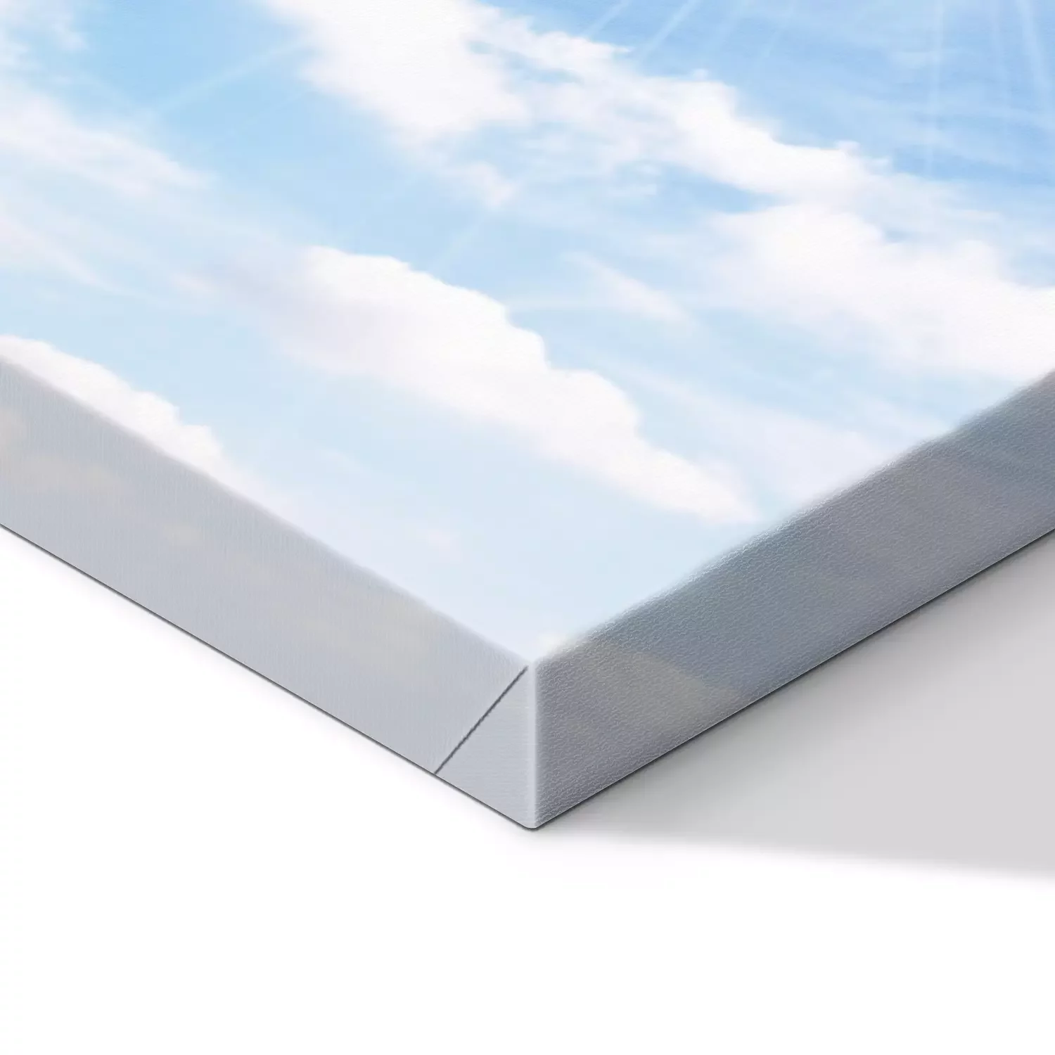 De print wordt aangebracht op hoogwaardig canvas dat op een schildersweefgetouw (spieraam) wordt gespannen. Omdat de print de zijranden bedekt, hoeft het ontwerp niet met een extra kader te worden omlijst. Wij raden ook composities aan die uit meerdere foto's bestaan en zo een coherente compositie vormen.