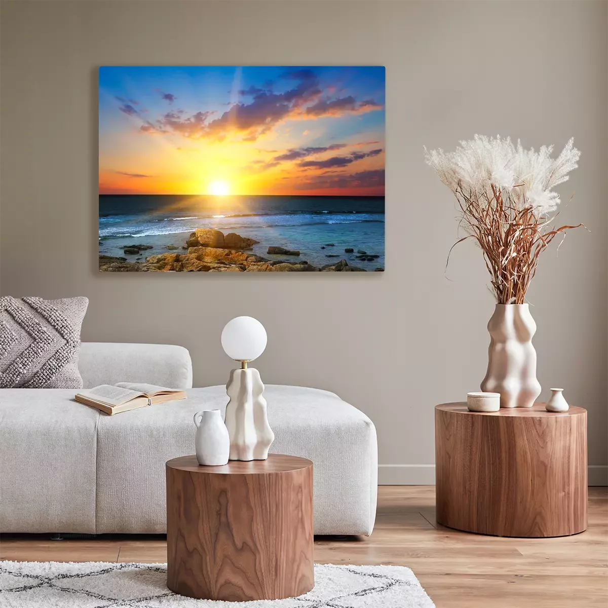 De print wordt aangebracht op hoogwaardig canvas dat op een schildersweefgetouw (spieraam) wordt gespannen. Omdat de print de zijranden bedekt, hoeft het ontwerp niet met een extra kader te worden omlijst. Wij raden ook composities aan die uit meerdere foto's bestaan en zo een coherente compositie vormen.