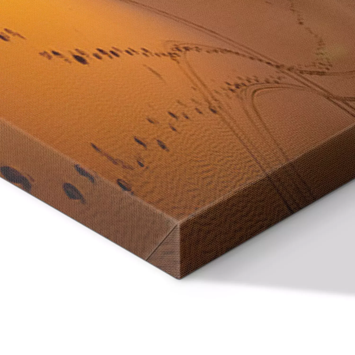 De print wordt aangebracht op hoogwaardig canvas dat op een schildersweefgetouw (spieraam) wordt gespannen. Omdat de print de zijranden bedekt, hoeft het ontwerp niet met een extra kader te worden omlijst. Wij raden ook composities aan die uit meerdere foto's bestaan en zo een coherente compositie vormen.