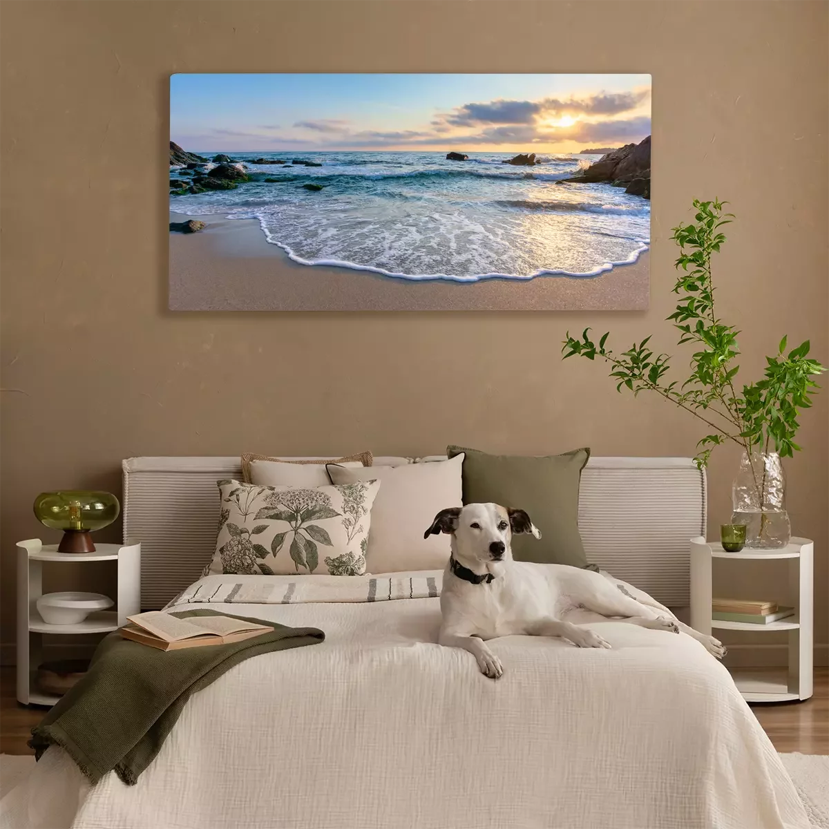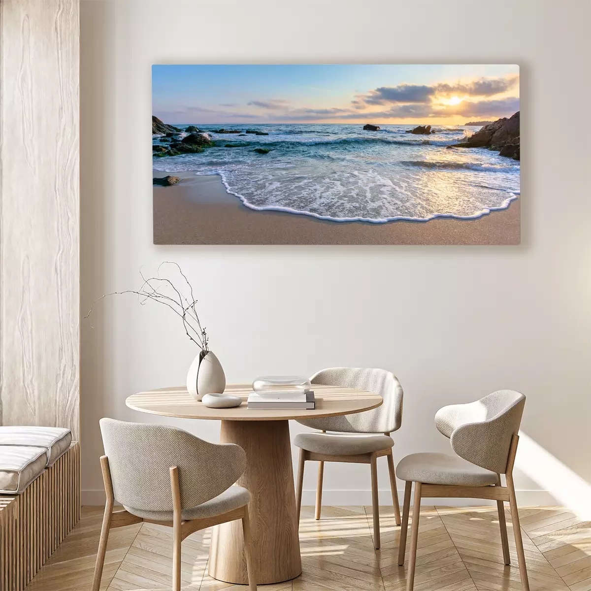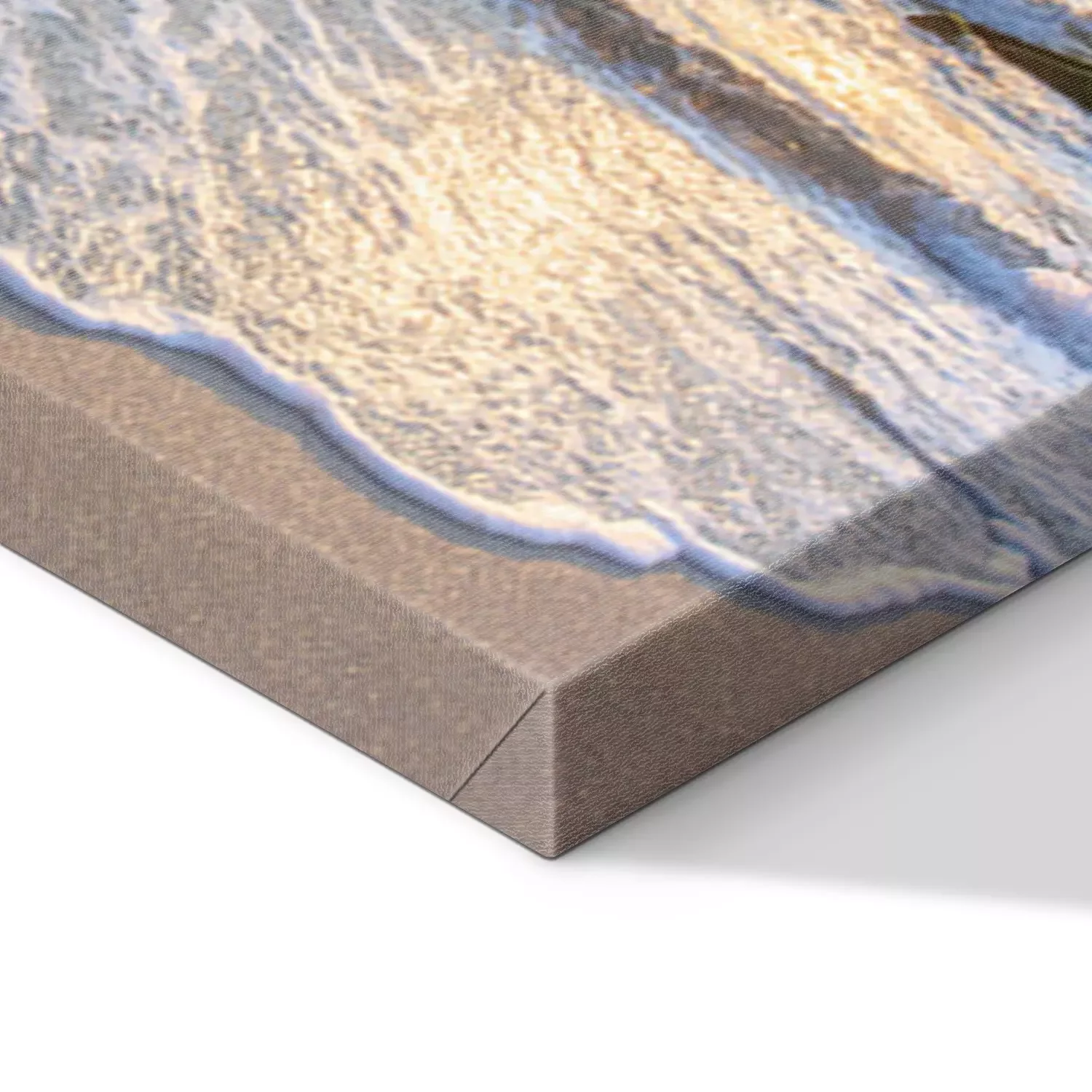 De print wordt aangebracht op hoogwaardig canvas dat op een schildersweefgetouw (spieraam) wordt gespannen. Omdat de print de zijranden bedekt, hoeft het ontwerp niet met een extra kader te worden omlijst. Wij raden ook composities aan die uit meerdere foto's bestaan en zo een coherente compositie vormen.