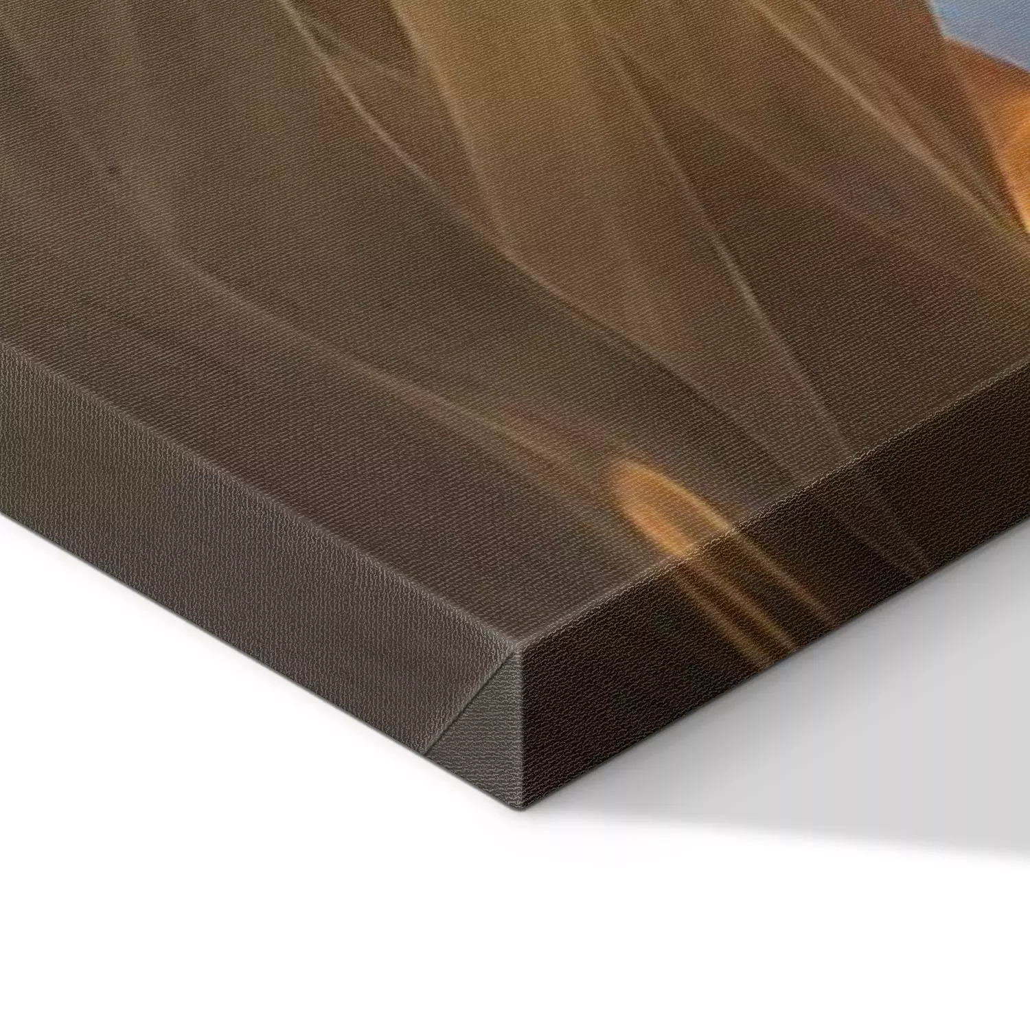 De print wordt aangebracht op hoogwaardig canvas dat op een schildersweefgetouw (spieraam) wordt gespannen. Omdat de print de zijranden bedekt, hoeft het ontwerp niet met een extra kader te worden omlijst. Wij raden ook composities aan die uit meerdere foto's bestaan en zo een coherente compositie vormen.
