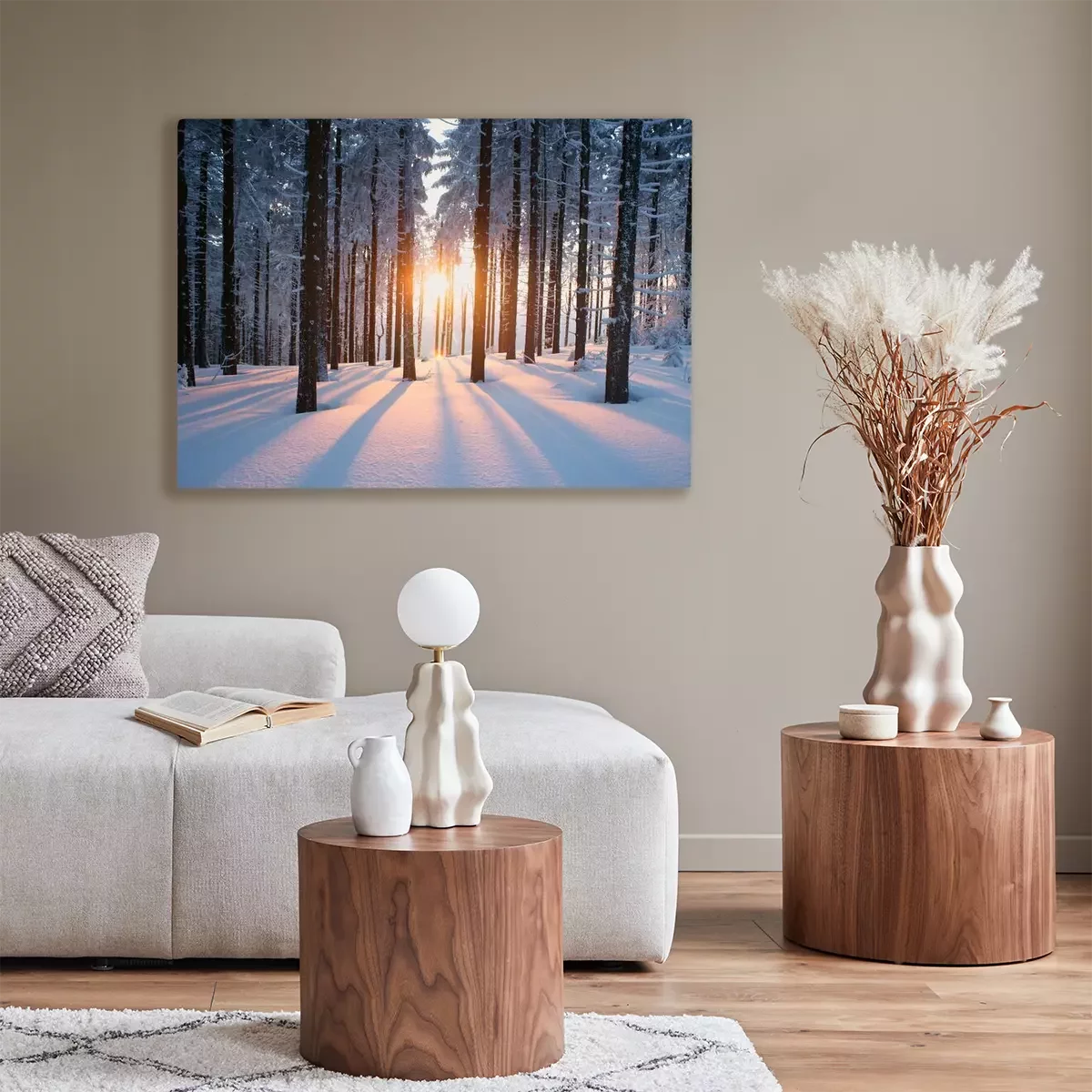 De print wordt aangebracht op hoogwaardig canvas dat op een schildersweefgetouw (spieraam) wordt gespannen. Omdat de print de zijranden bedekt, hoeft het ontwerp niet met een extra kader te worden omlijst. Wij raden ook composities aan die uit meerdere foto's bestaan en zo een coherente compositie vormen.