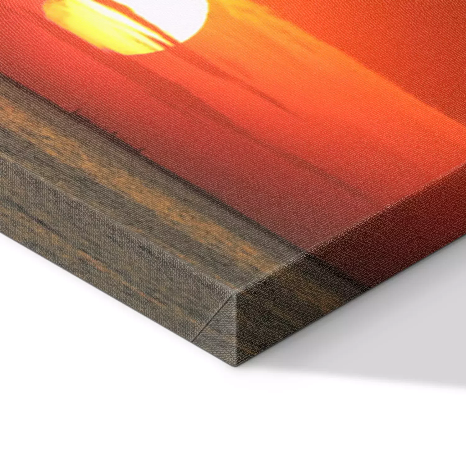 De print wordt aangebracht op hoogwaardig canvas dat op een schildersweefgetouw (spieraam) wordt gespannen. Omdat de print de zijranden bedekt, hoeft het ontwerp niet met een extra kader te worden omlijst. Wij raden ook composities aan die uit meerdere foto's bestaan en zo een coherente compositie vormen.