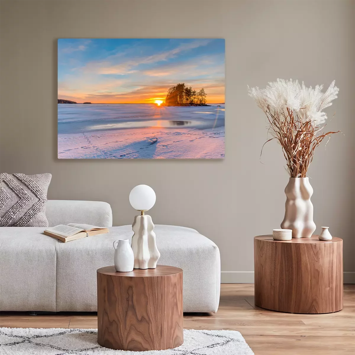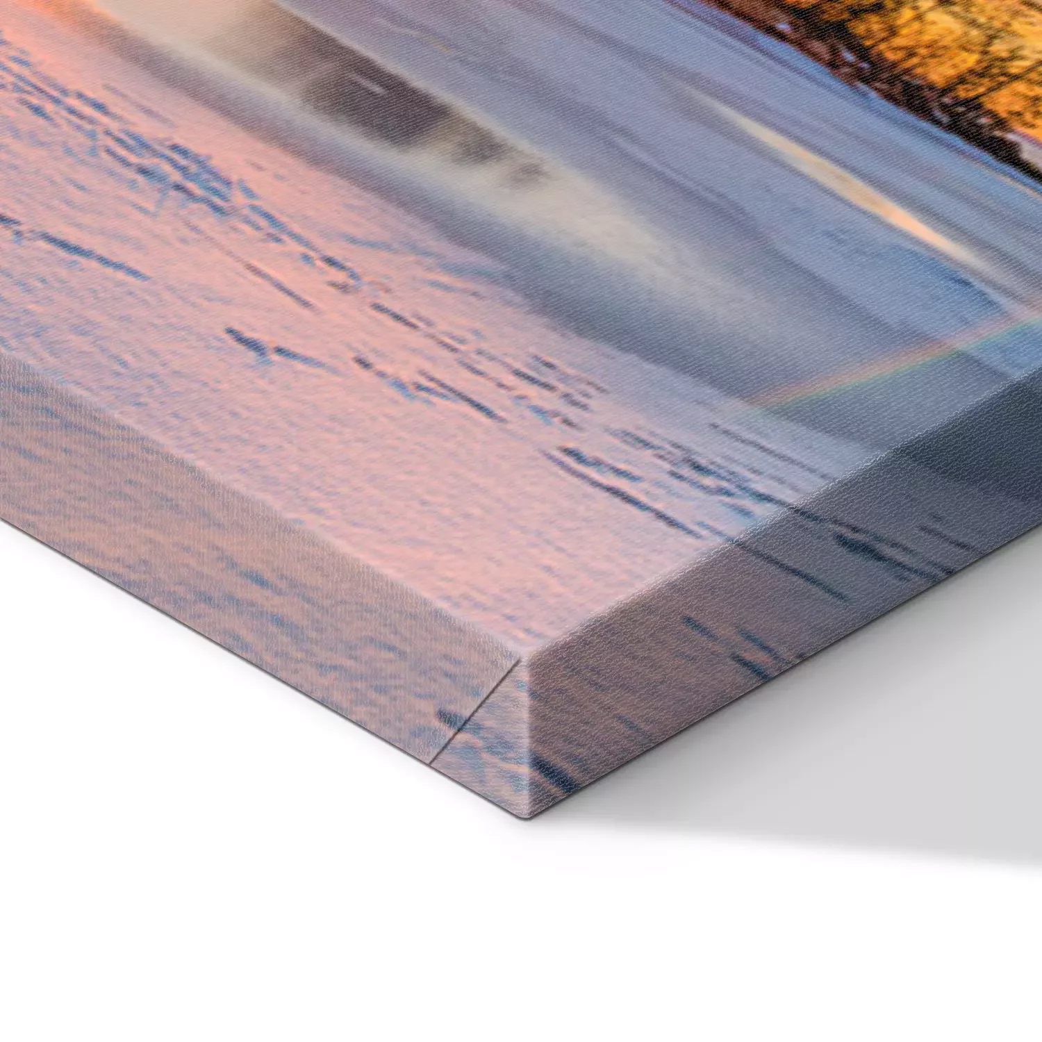 De print wordt aangebracht op hoogwaardig canvas dat op een schildersweefgetouw (spieraam) wordt gespannen. Omdat de print de zijranden bedekt, hoeft het ontwerp niet met een extra kader te worden omlijst. Wij raden ook composities aan die uit meerdere foto's bestaan en zo een coherente compositie vormen.