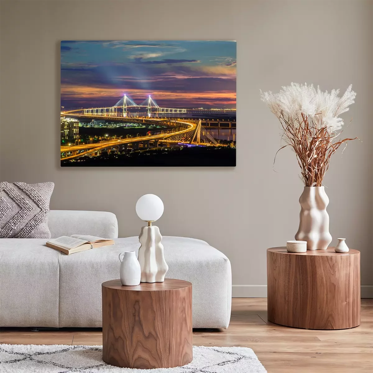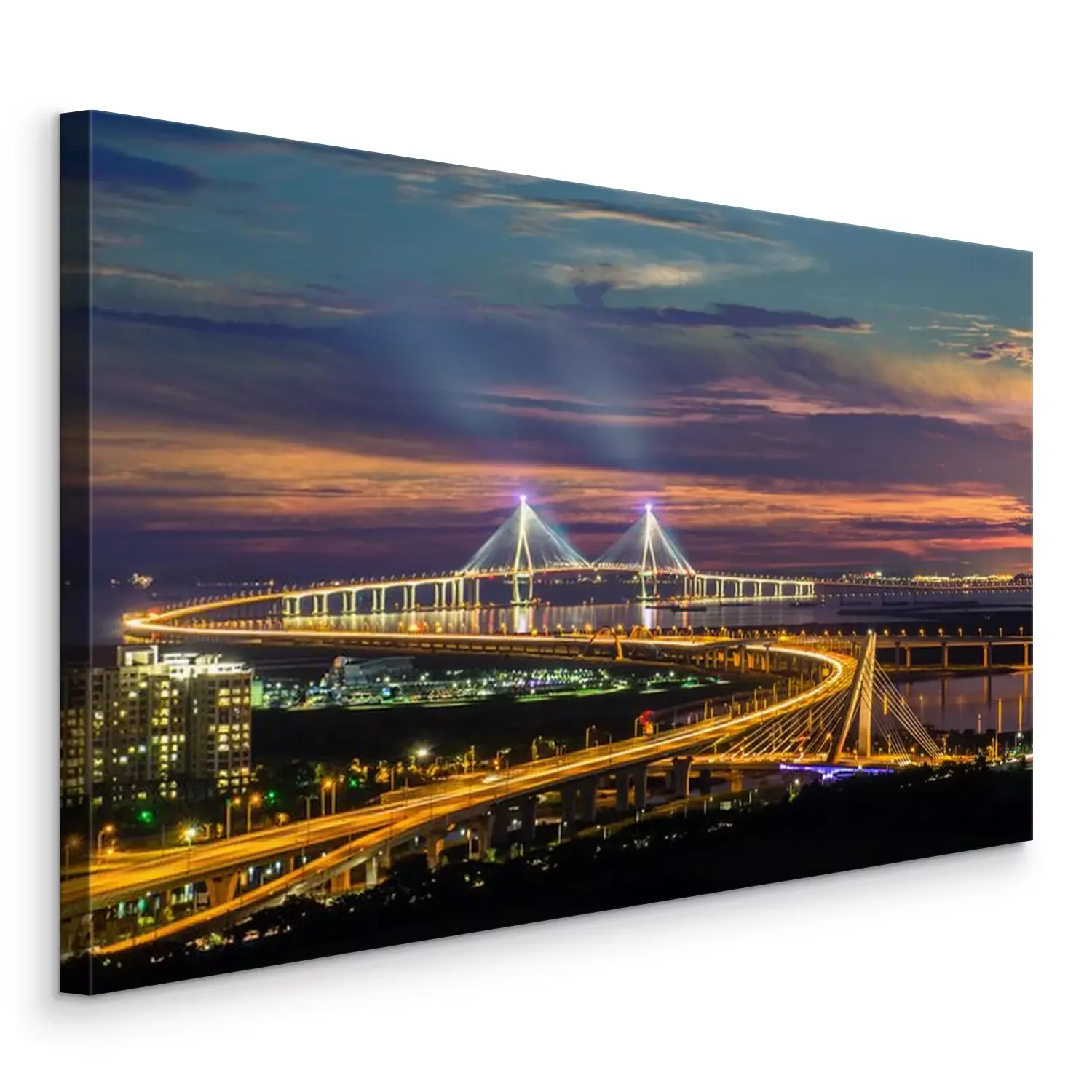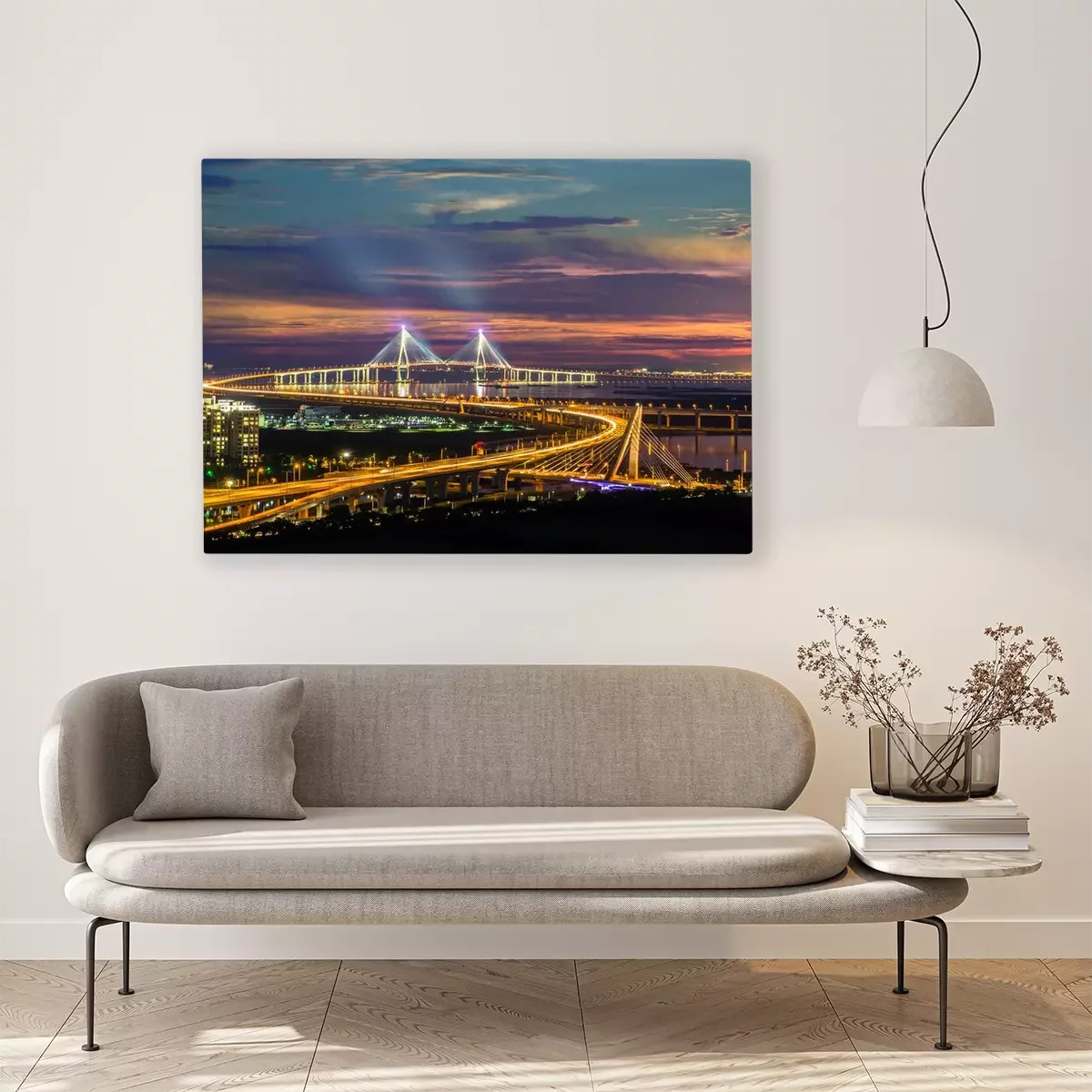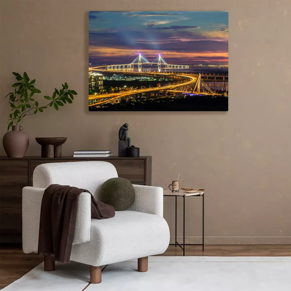 Canvas: Sunset van Incheon Bridge at Night, Seouth Korea.