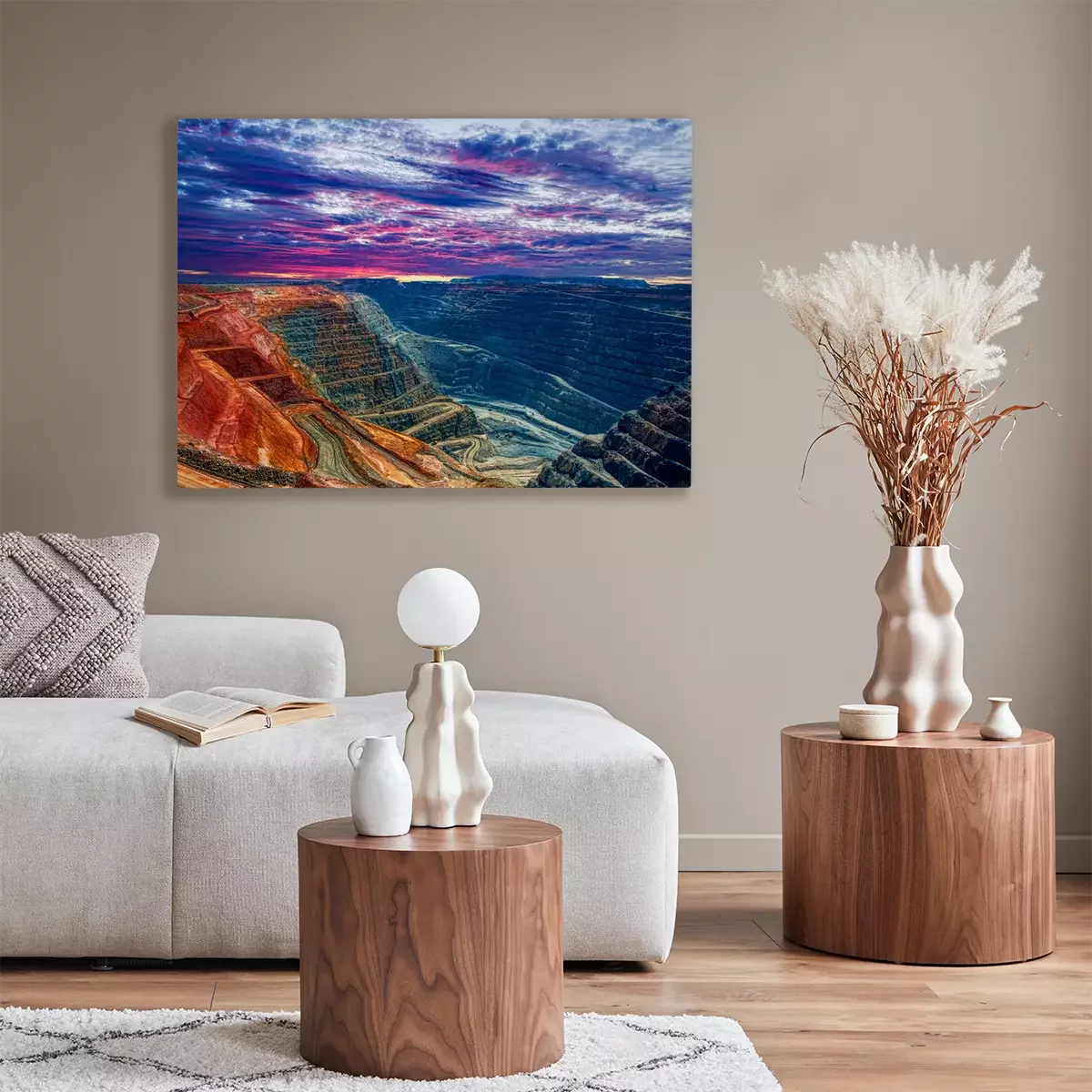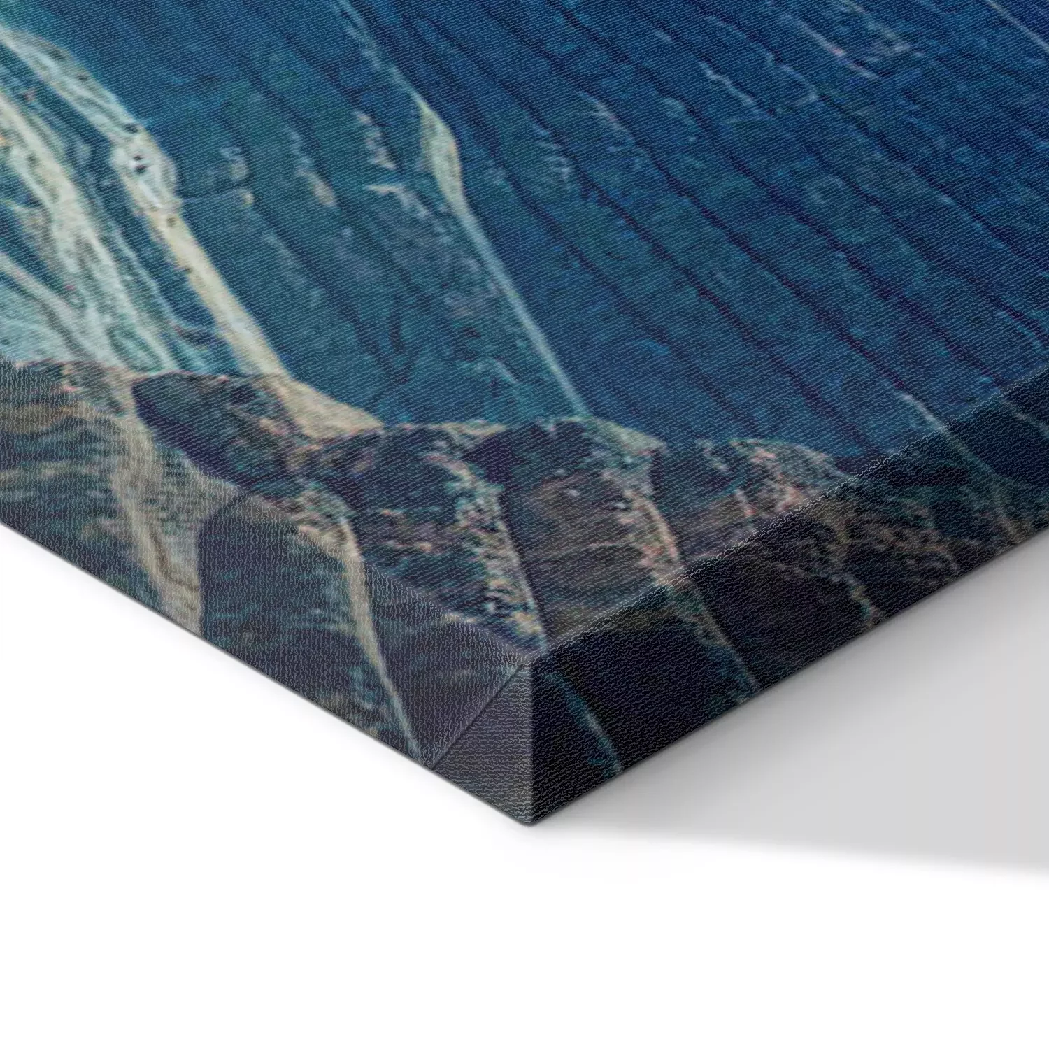De print wordt aangebracht op hoogwaardig canvas dat op een schildersweefgetouw (spieraam) wordt gespannen. Omdat de print de zijranden bedekt, hoeft het ontwerp niet met een extra kader te worden omlijst. Wij raden ook composities aan die uit meerdere foto's bestaan en zo een coherente compositie vormen.