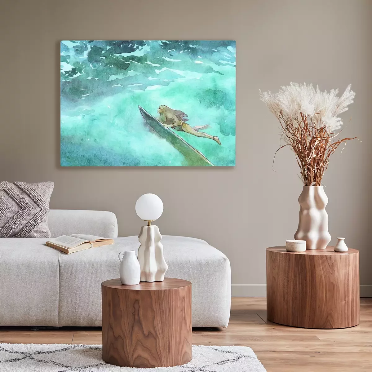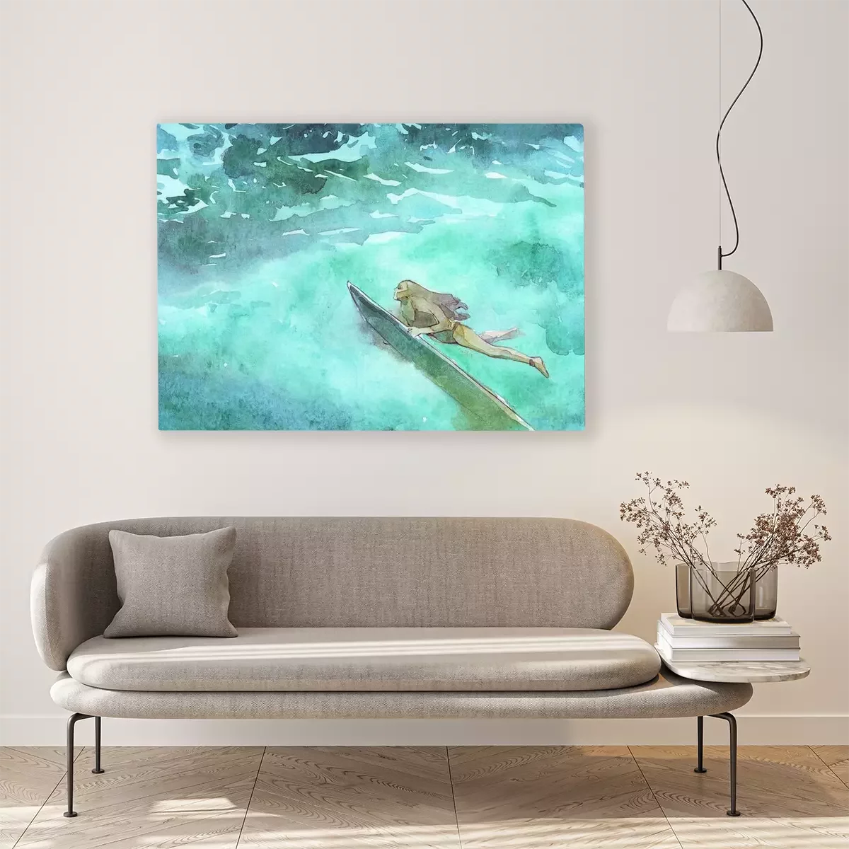 Canvas: Surfen meisje onderwater aquarel