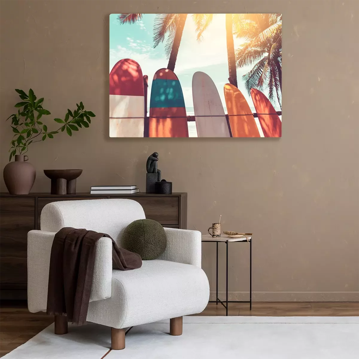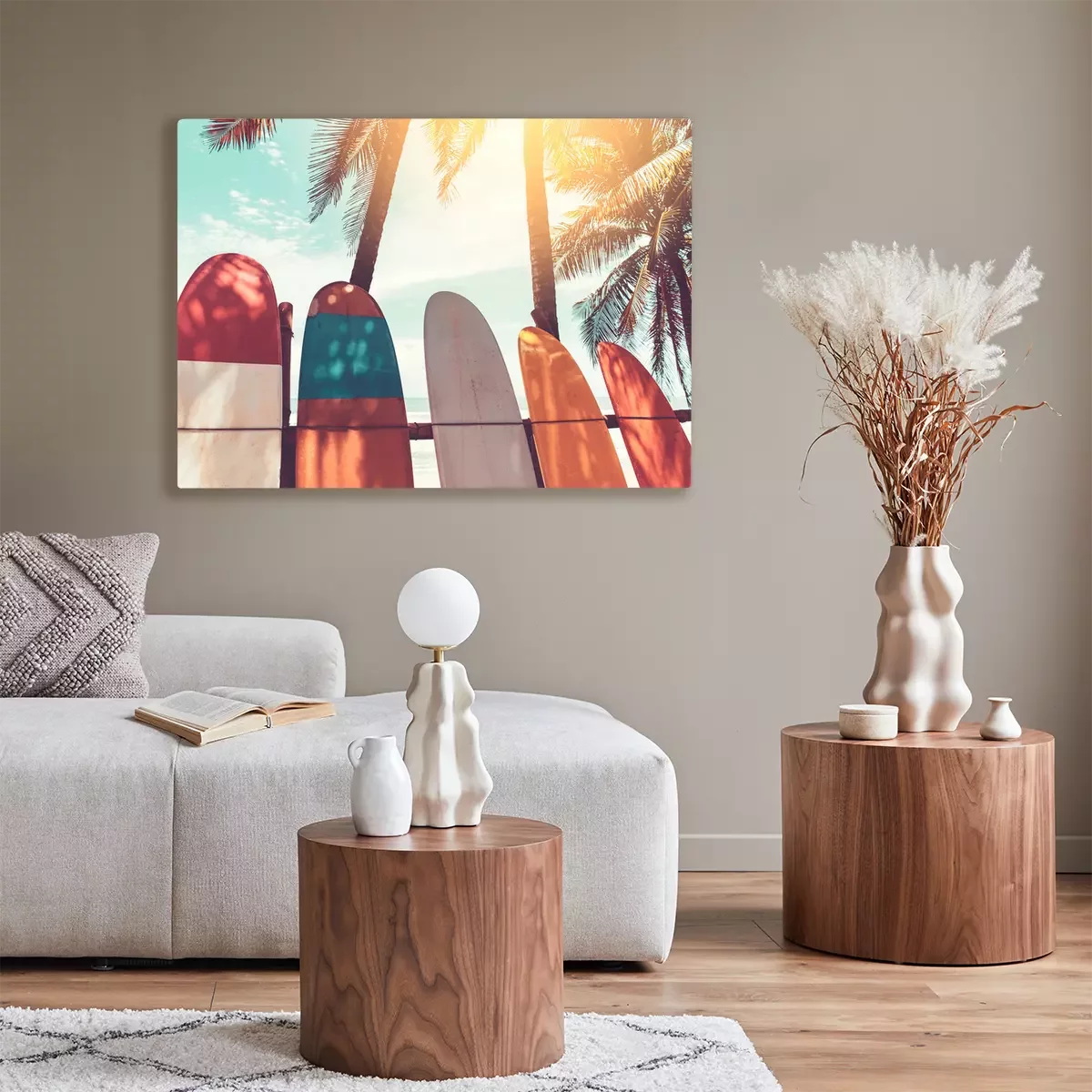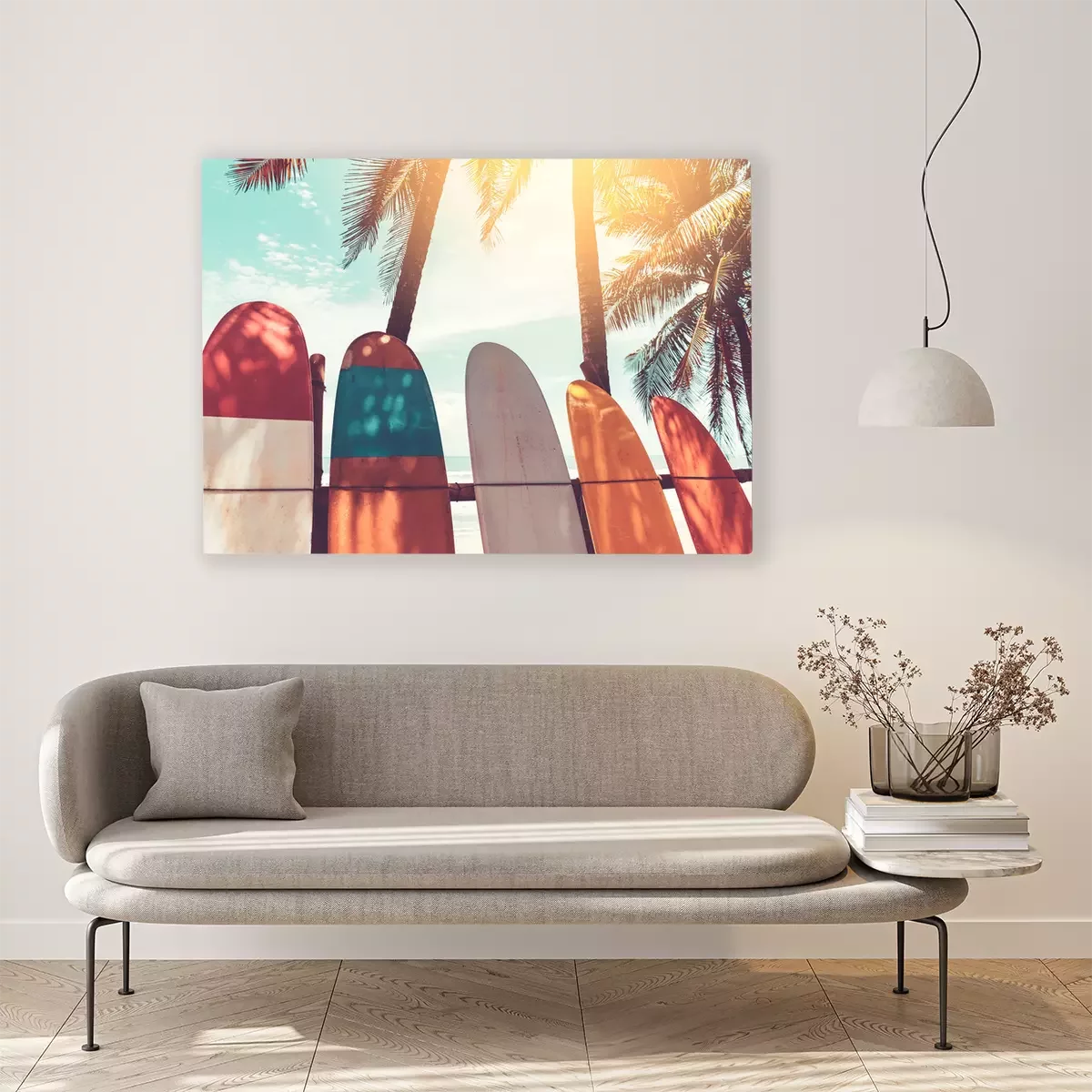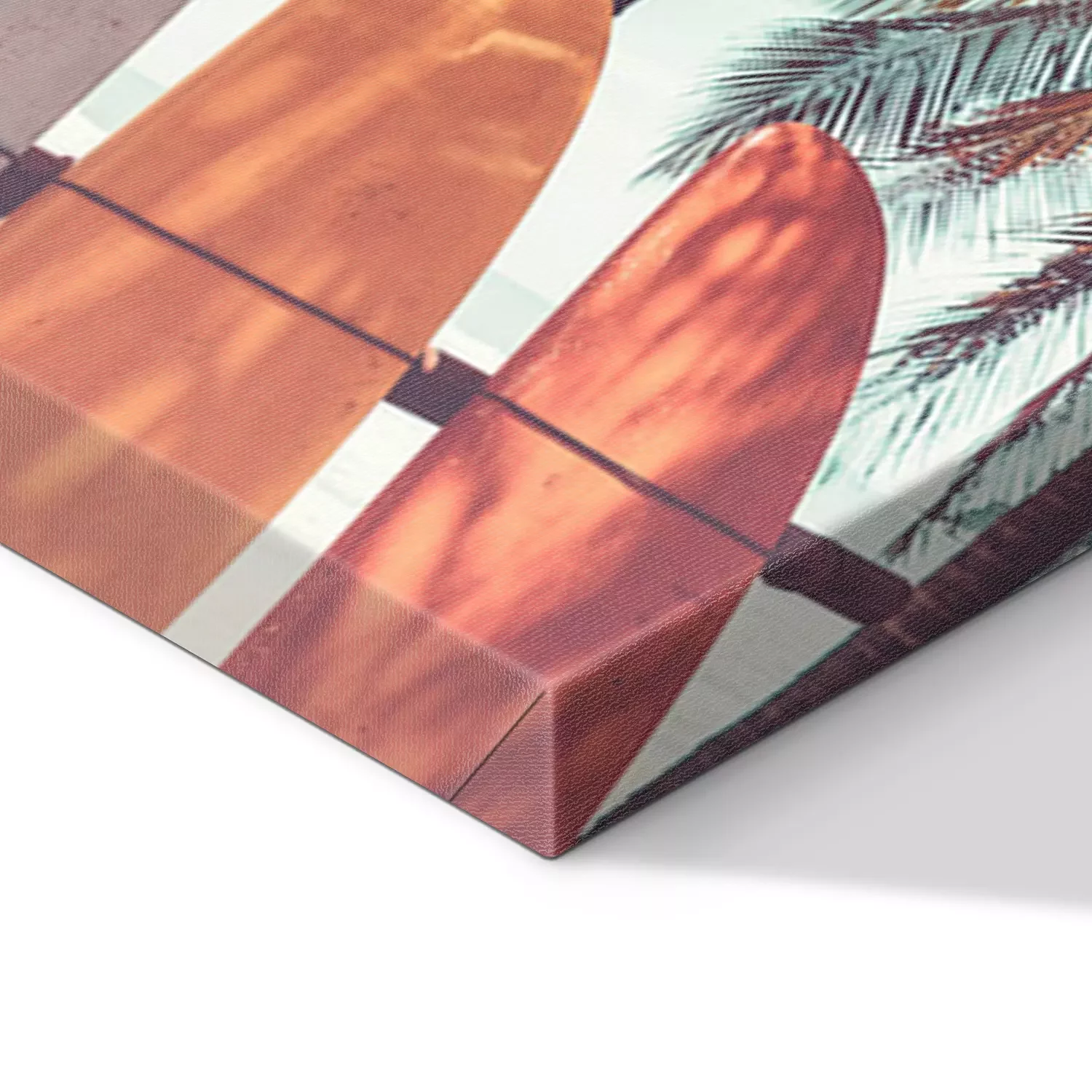 De print wordt aangebracht op hoogwaardig canvas dat op een schildersweefgetouw (spieraam) wordt gespannen. Omdat de print de zijranden bedekt, hoeft het ontwerp niet met een extra kader te worden omlijst. Wij raden ook composities aan die uit meerdere foto's bestaan en zo een coherente compositie vormen.