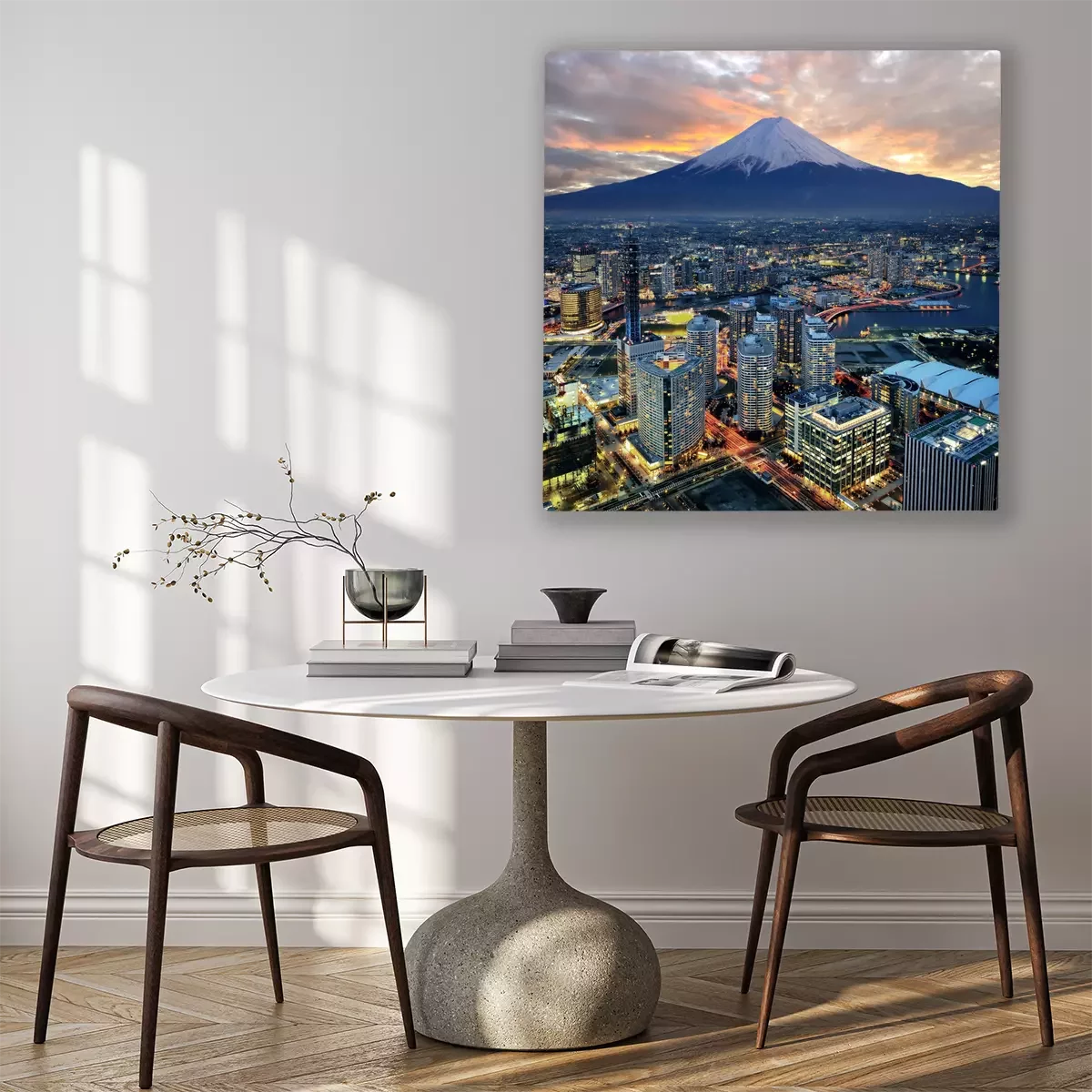 Canvas: Surreal mening van Yokohama stad en Mt. Fuji
