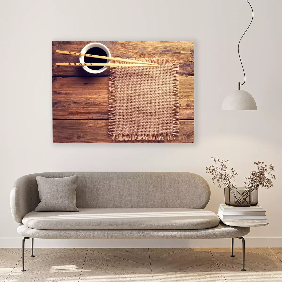 Canvas: Sushi eetstokjes en sojasaus bowl