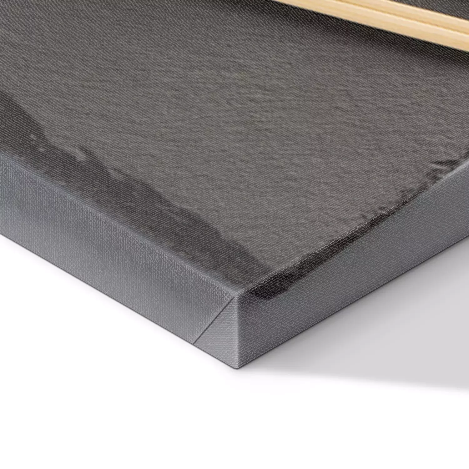 De print wordt aangebracht op hoogwaardig canvas dat op een schildersweefgetouw (spieraam) wordt gespannen. Omdat de print de zijranden bedekt, hoeft het ontwerp niet met een extra kader te worden omlijst. Wij raden ook composities aan die uit meerdere foto's bestaan en zo een coherente compositie vormen.