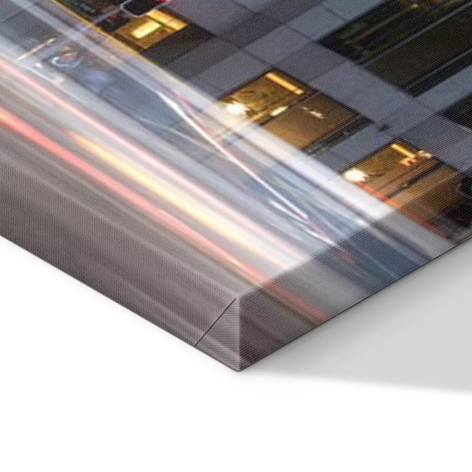 De print wordt aangebracht op hoogwaardig canvas dat op een schildersweefgetouw (spieraam) wordt gespannen. Omdat de print de zijranden bedekt, hoeft het ontwerp niet met een extra kader te worden omlijst. Wij raden ook composities aan die uit meerdere foto's bestaan en zo een coherente compositie vormen.