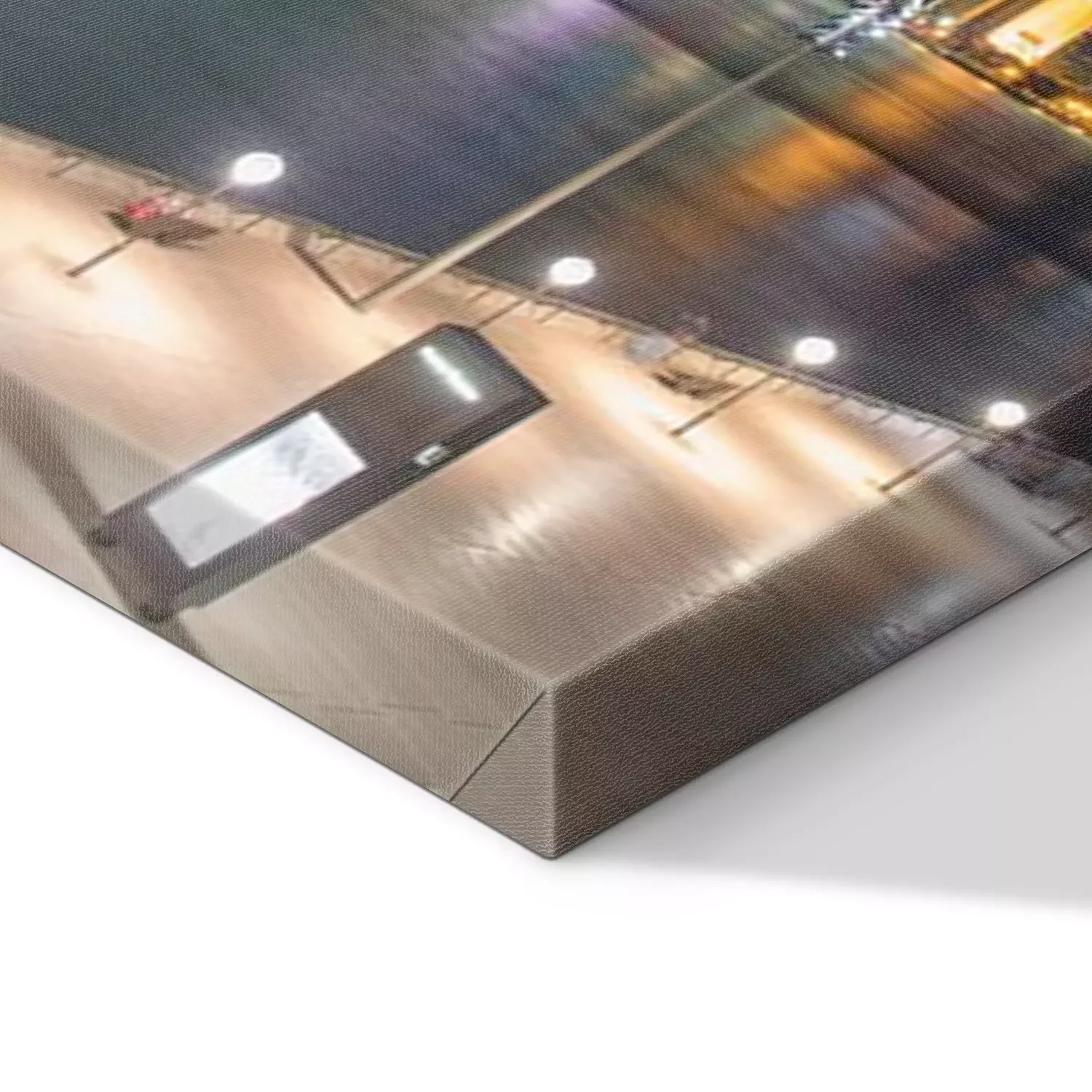 De print wordt aangebracht op hoogwaardig canvas dat op een schildersweefgetouw (spieraam) wordt gespannen. Omdat de print de zijranden bedekt, hoeft het ontwerp niet met een extra kader te worden omlijst. Wij raden ook composities aan die uit meerdere foto's bestaan en zo een coherente compositie vormen.