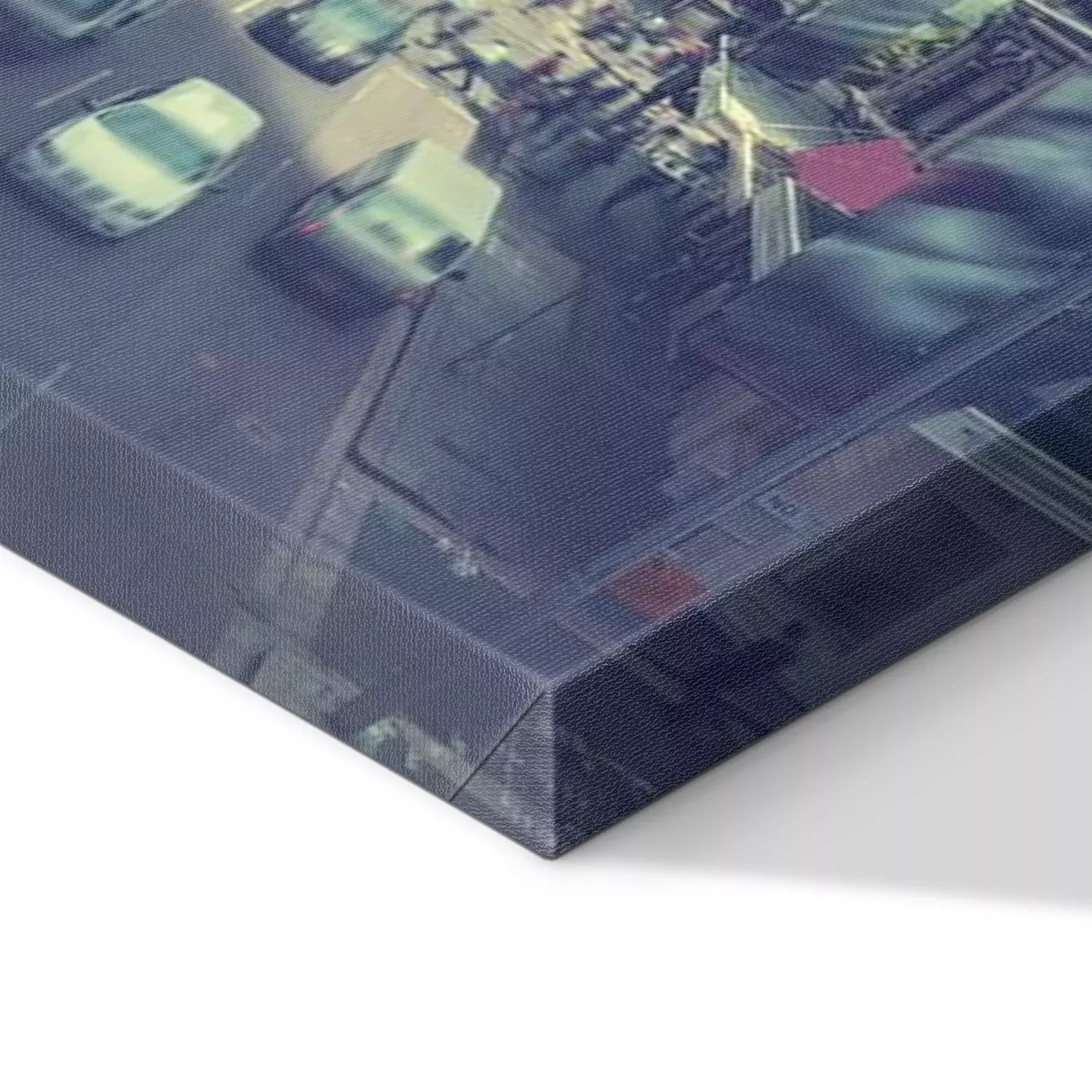 De print wordt aangebracht op hoogwaardig canvas dat op een schildersweefgetouw (spieraam) wordt gespannen. Omdat de print de zijranden bedekt, hoeft het ontwerp niet met een extra kader te worden omlijst. Wij raden ook composities aan die uit meerdere foto's bestaan en zo een coherente compositie vormen.