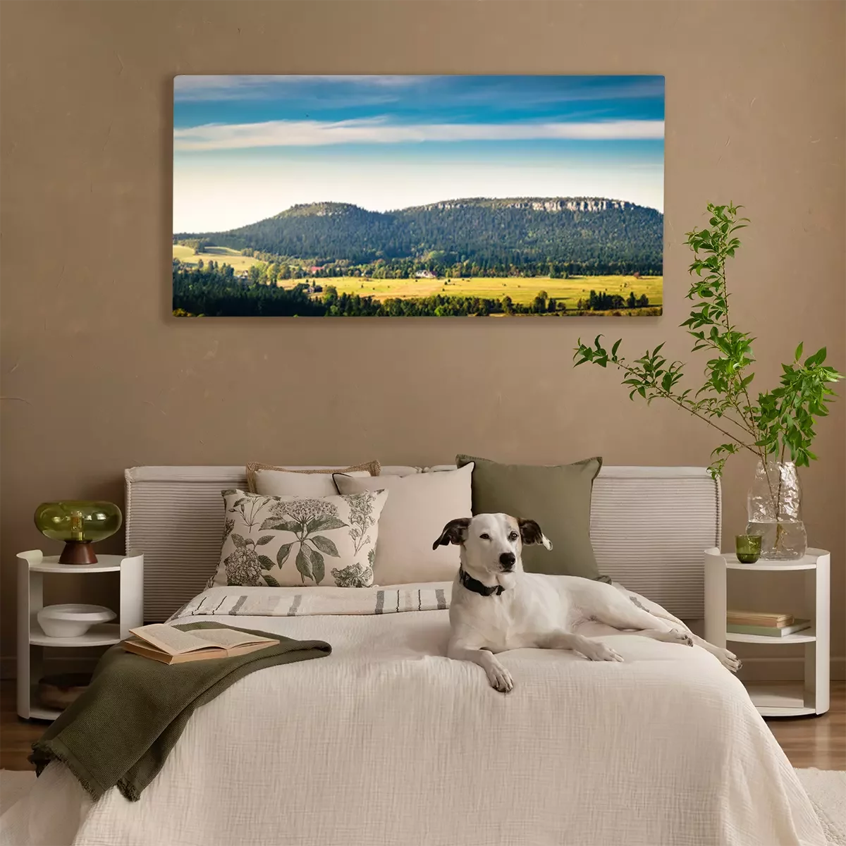 De print wordt aangebracht op hoogwaardig canvas dat op een schildersweefgetouw (spieraam) wordt gespannen. Omdat de print de zijranden bedekt, hoeft het ontwerp niet met een extra kader te worden omlijst. Wij raden ook composities aan die uit meerdere foto's bestaan en zo een coherente compositie vormen.