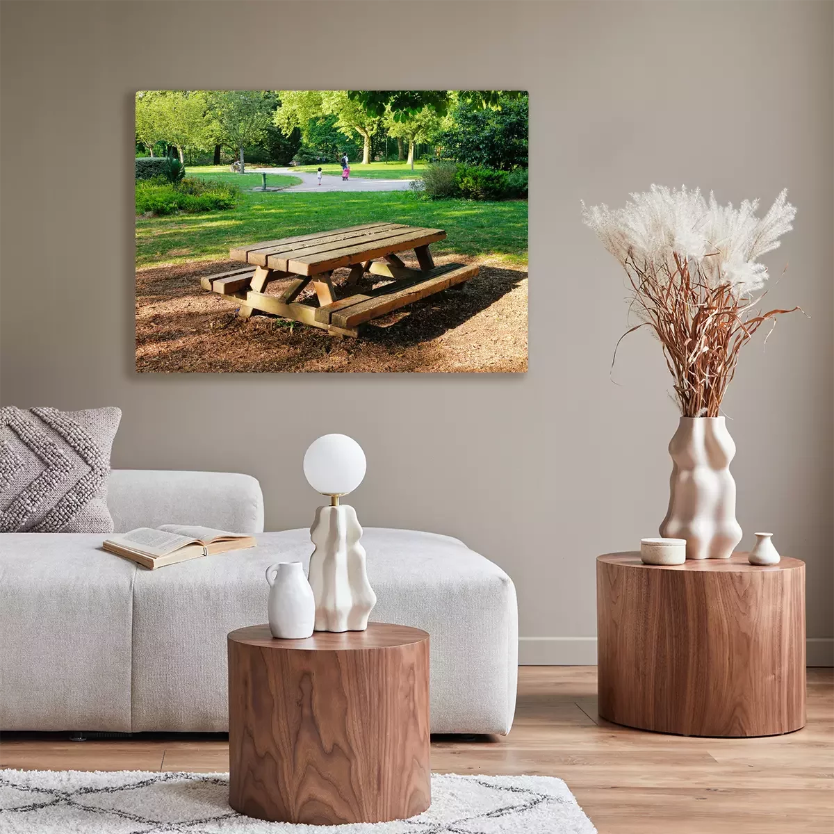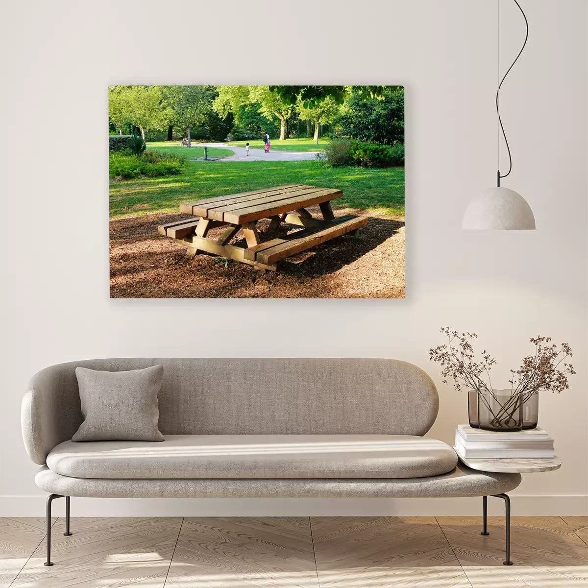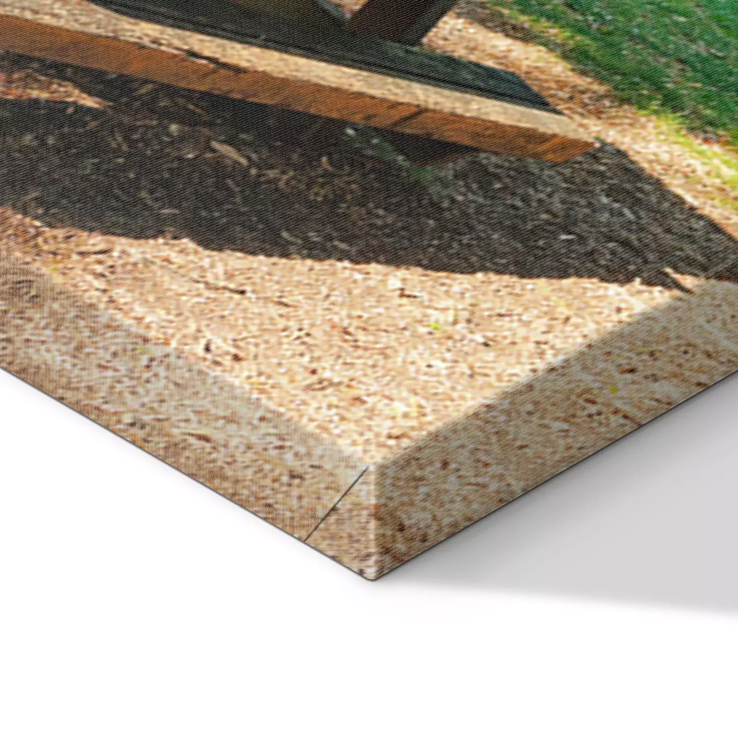 De print wordt aangebracht op hoogwaardig canvas dat op een schildersweefgetouw (spieraam) wordt gespannen. Omdat de print de zijranden bedekt, hoeft het ontwerp niet met een extra kader te worden omlijst. Wij raden ook composities aan die uit meerdere foto's bestaan en zo een coherente compositie vormen.