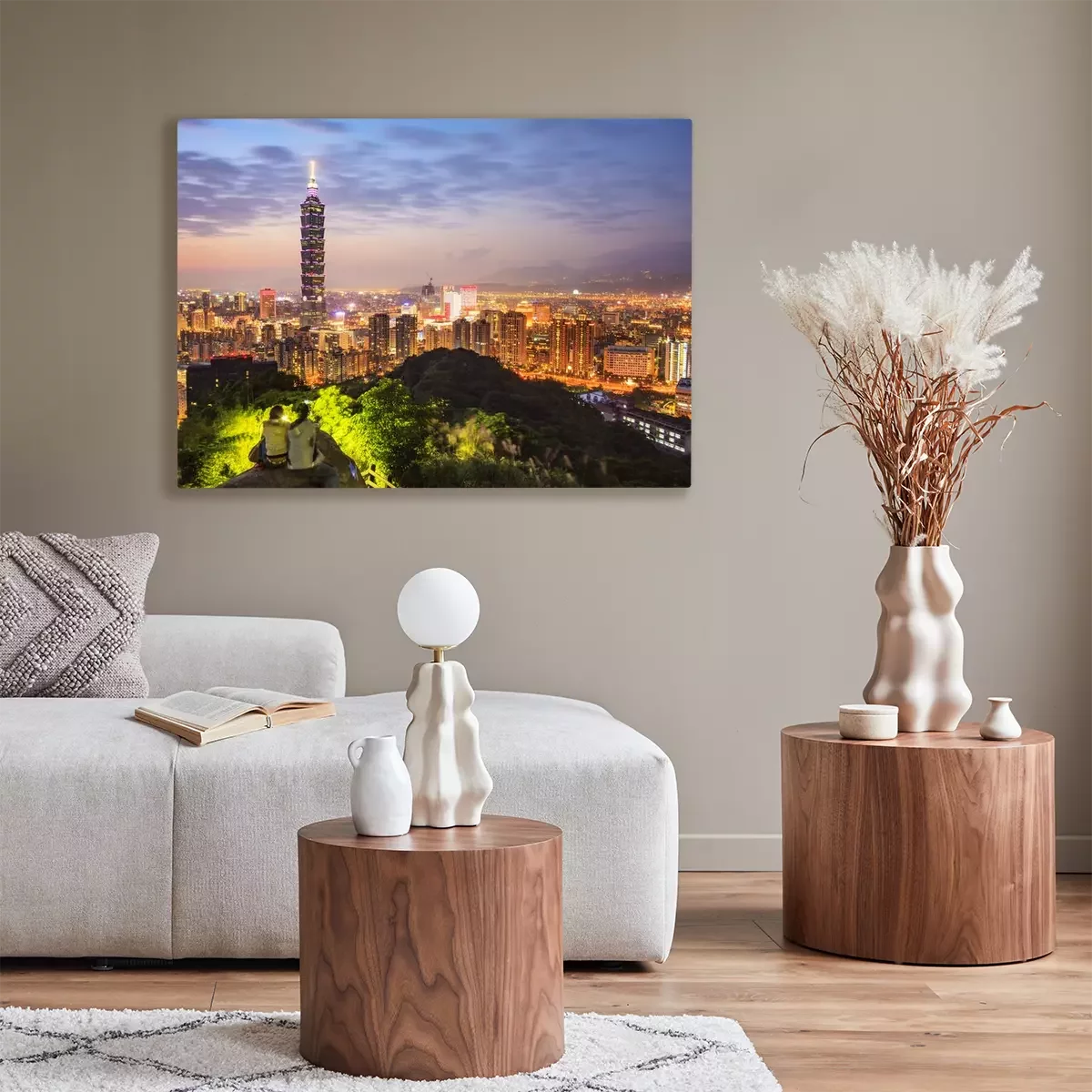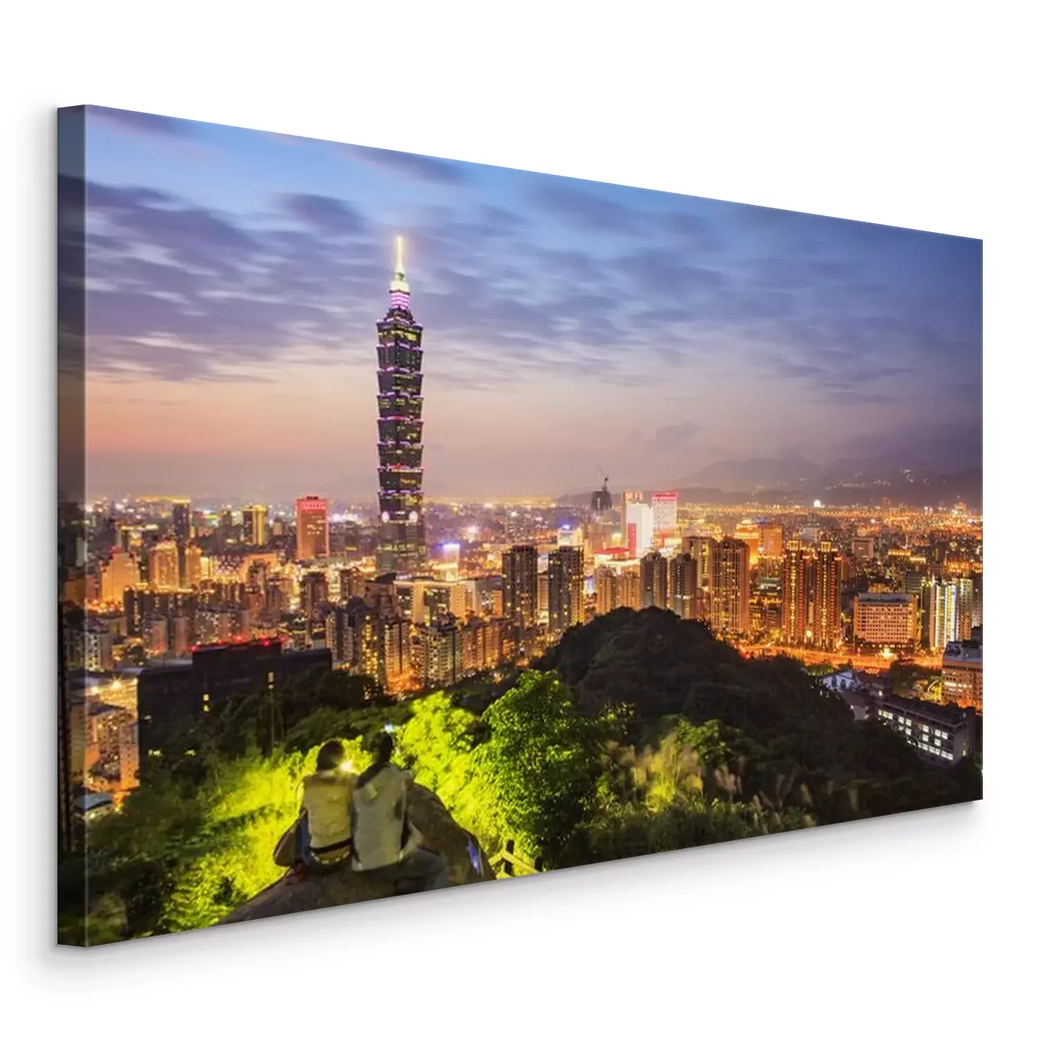 Canvas Taipei, Taiwan stad skyline bij schemering.