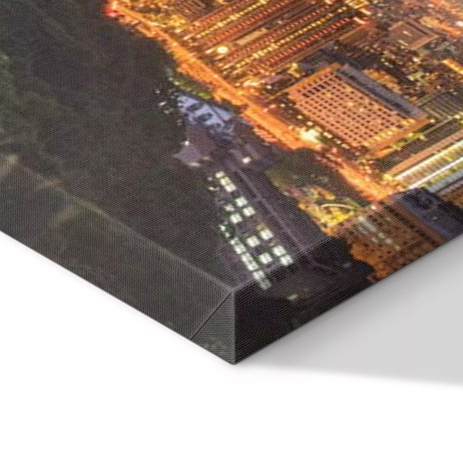 De print wordt aangebracht op hoogwaardig canvas dat op een schildersweefgetouw (spieraam) wordt gespannen. Omdat de print de zijranden bedekt, hoeft het ontwerp niet met een extra kader te worden omlijst. Wij raden ook composities aan die uit meerdere foto's bestaan en zo een coherente compositie vormen.