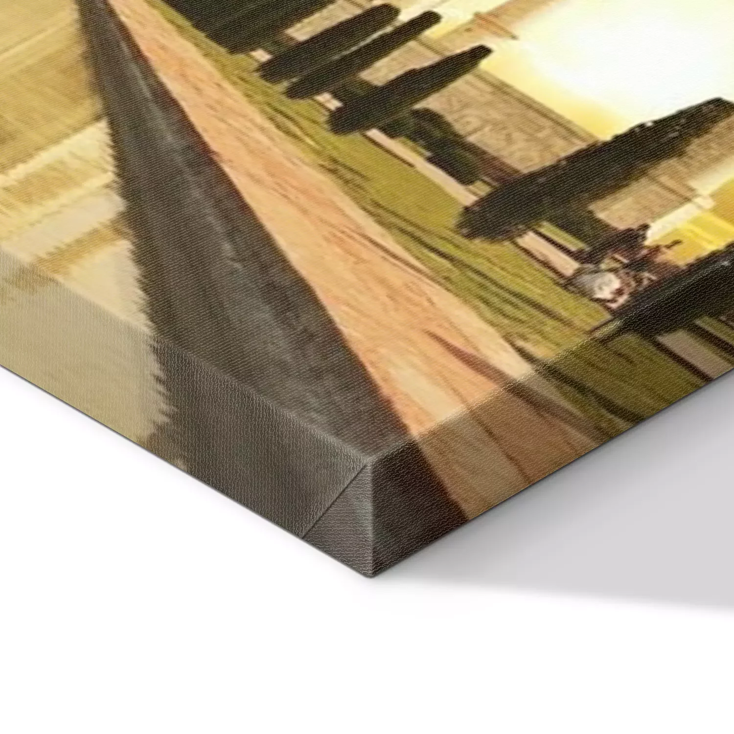 De print wordt aangebracht op hoogwaardig canvas dat op een schildersweefgetouw (spieraam) wordt gespannen. Omdat de print de zijranden bedekt, hoeft het ontwerp niet met een extra kader te worden omlijst. Wij raden ook composities aan die uit meerdere foto's bestaan en zo een coherente compositie vormen.