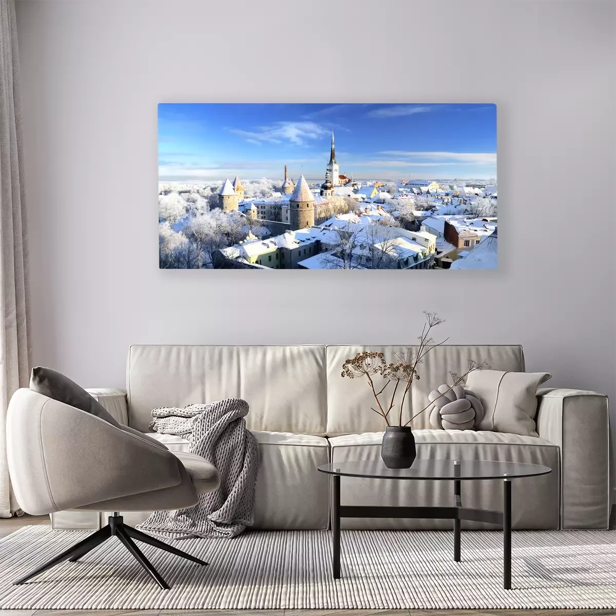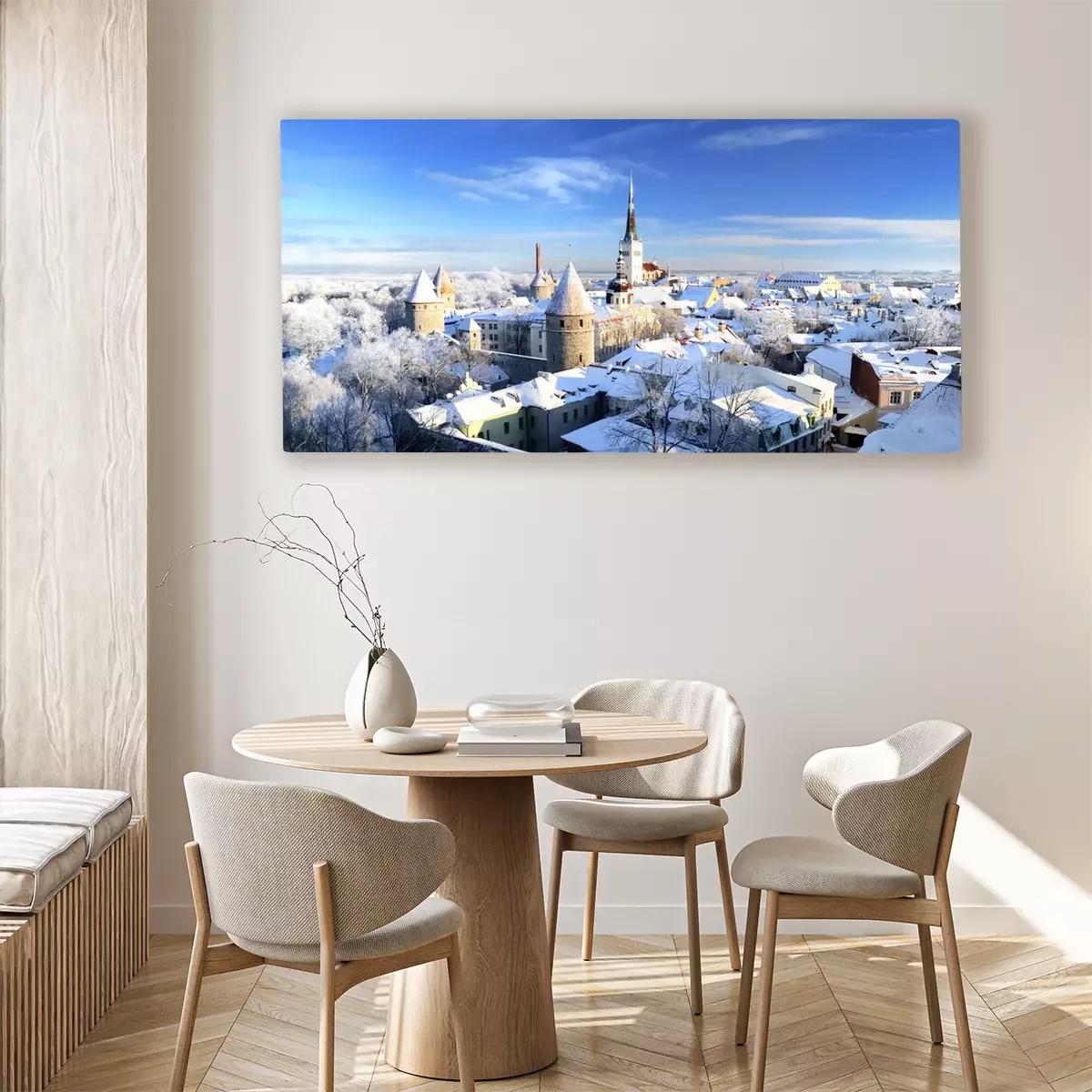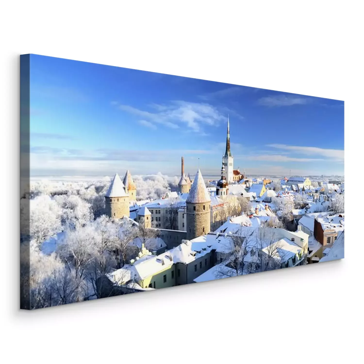 Canvas Tallinn. Estland. Sneeuw op bomen in de winter, Het panorama uitzicht