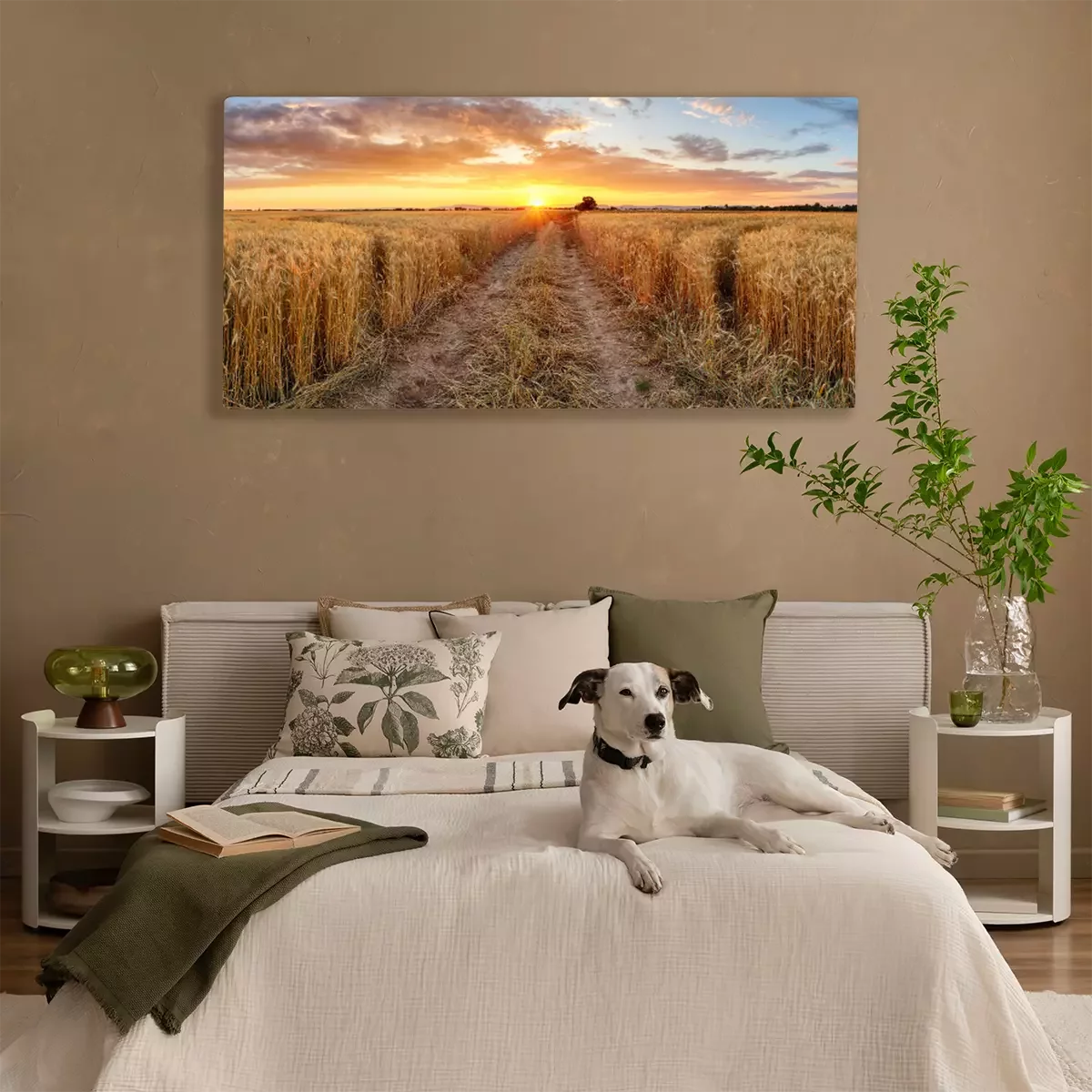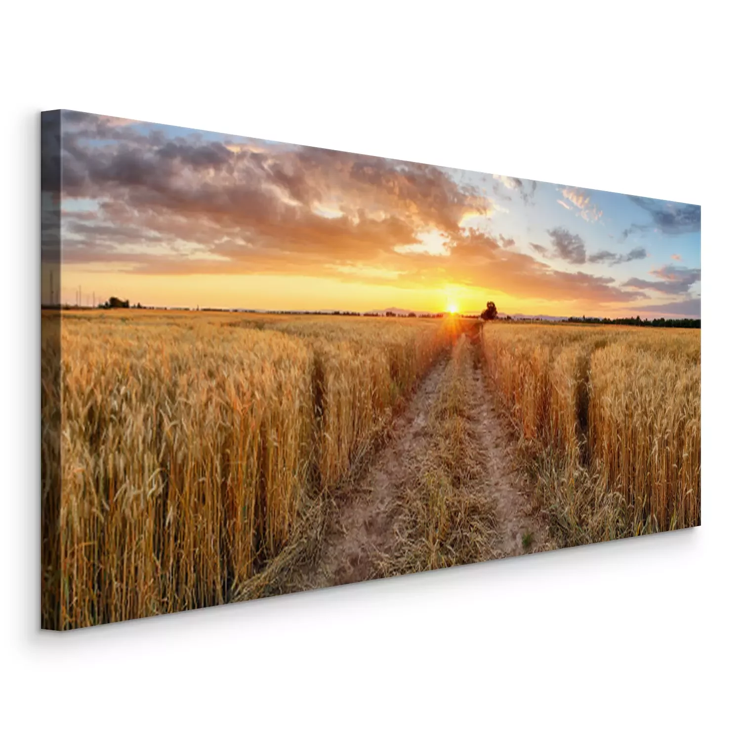 Canvas: Tarwe veld bij zonsondergang, panorama