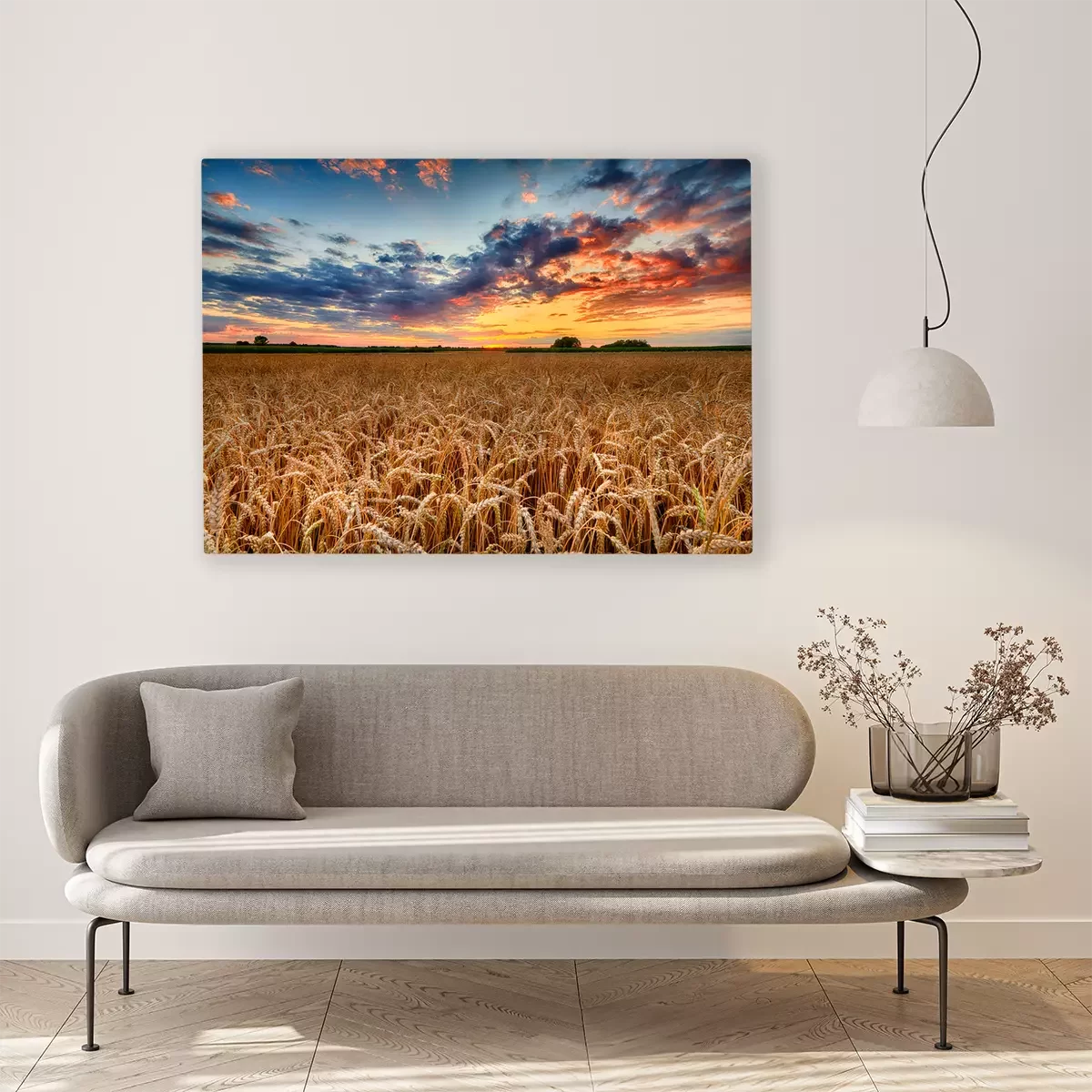 Canvas: Tarwevelden bij zonsondergang