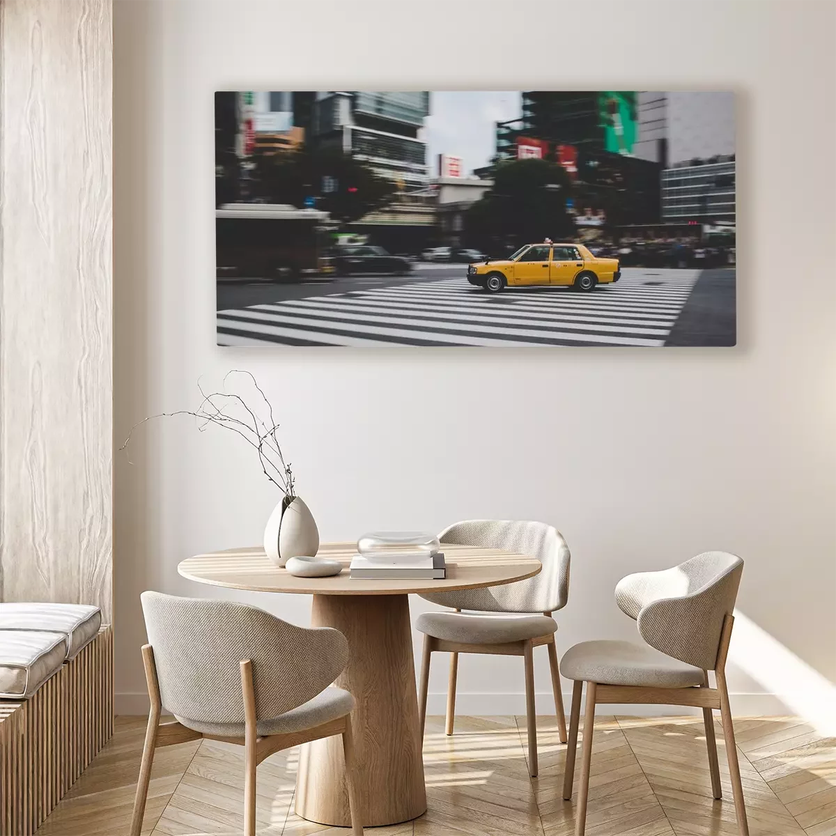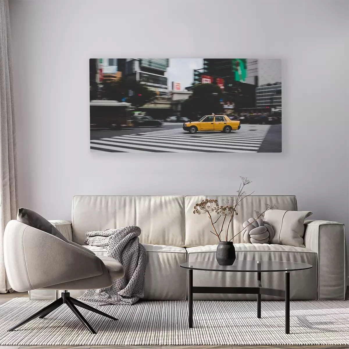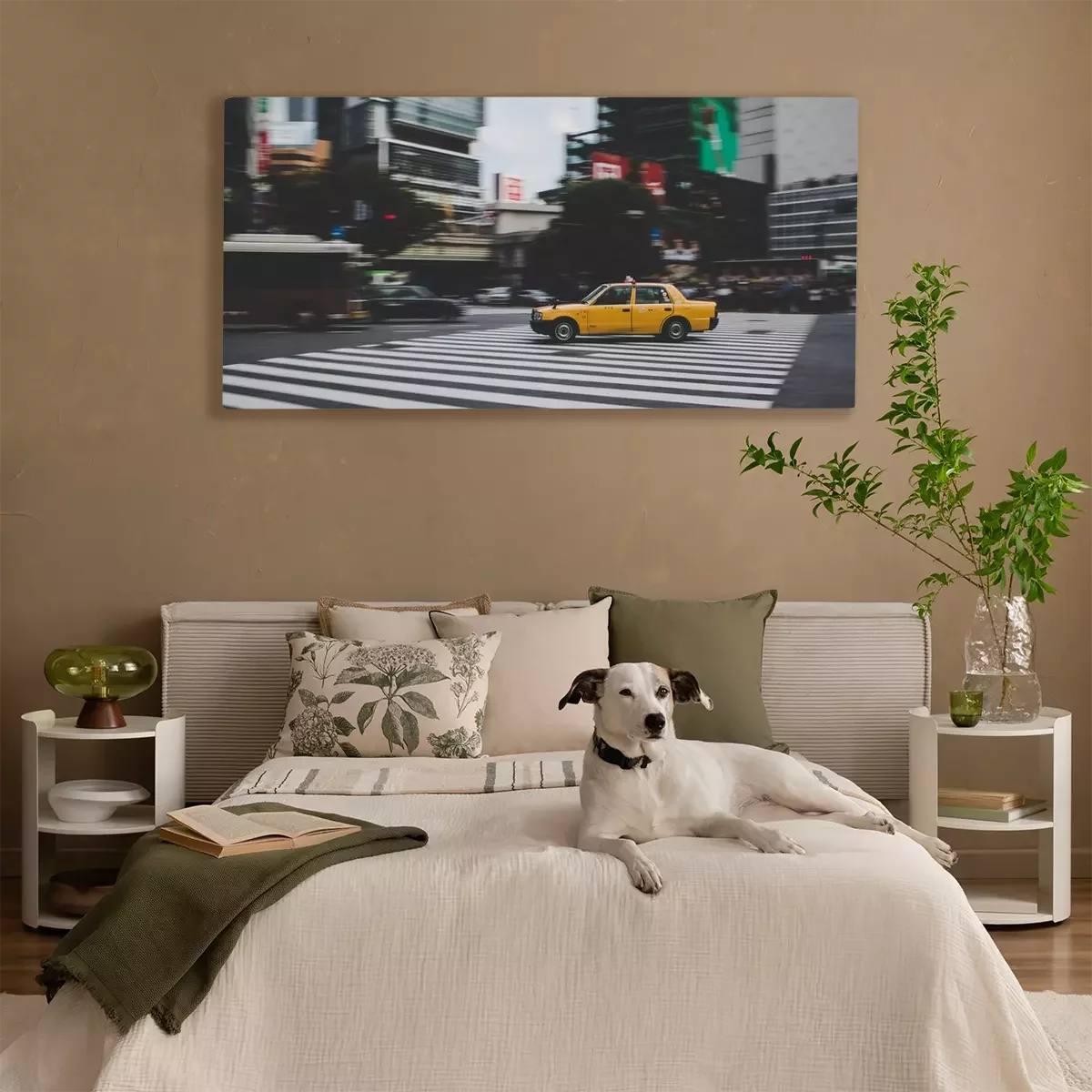 Canvas: Taxi speeding across Shibuya crossing in Tokyo Japan