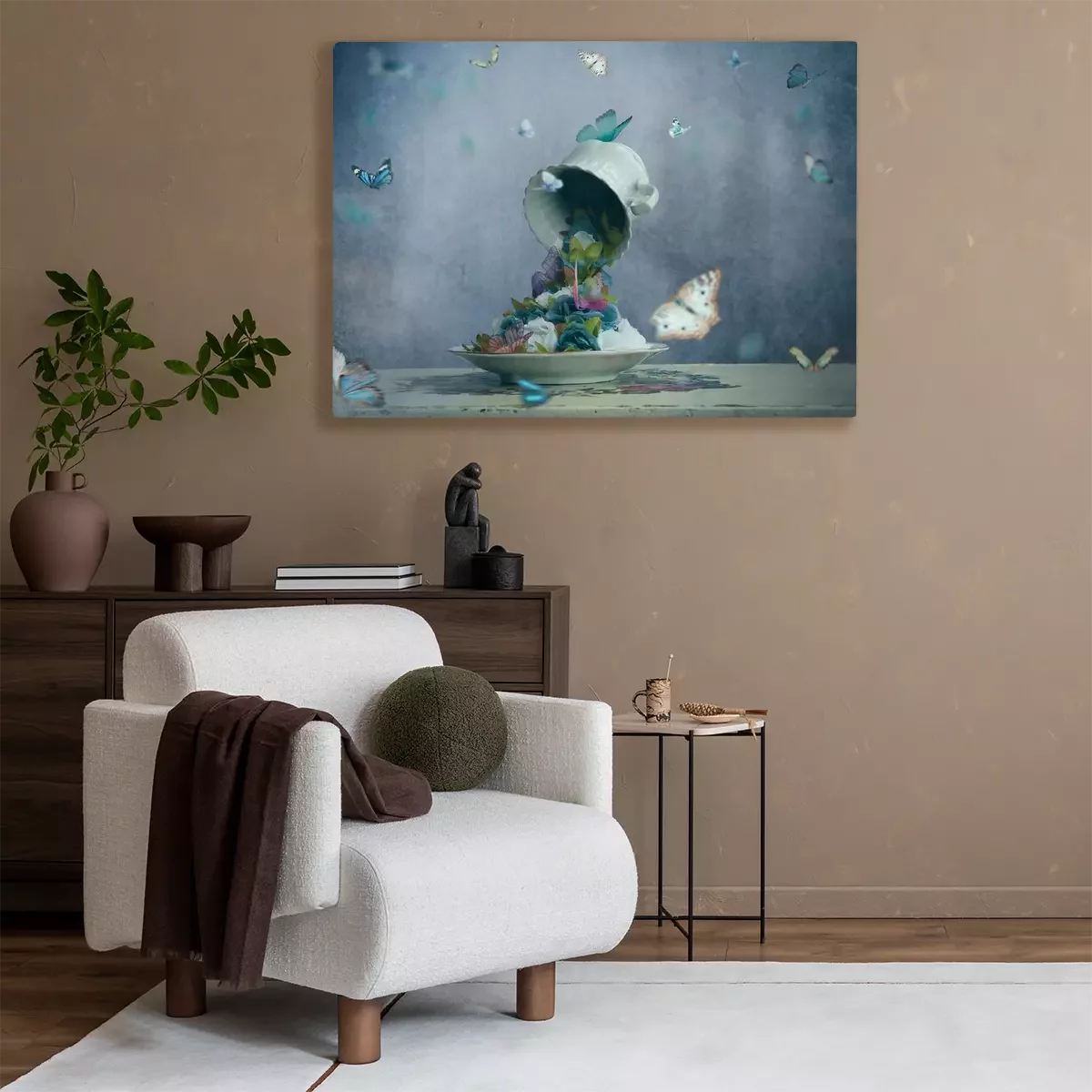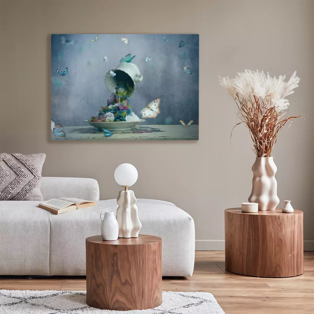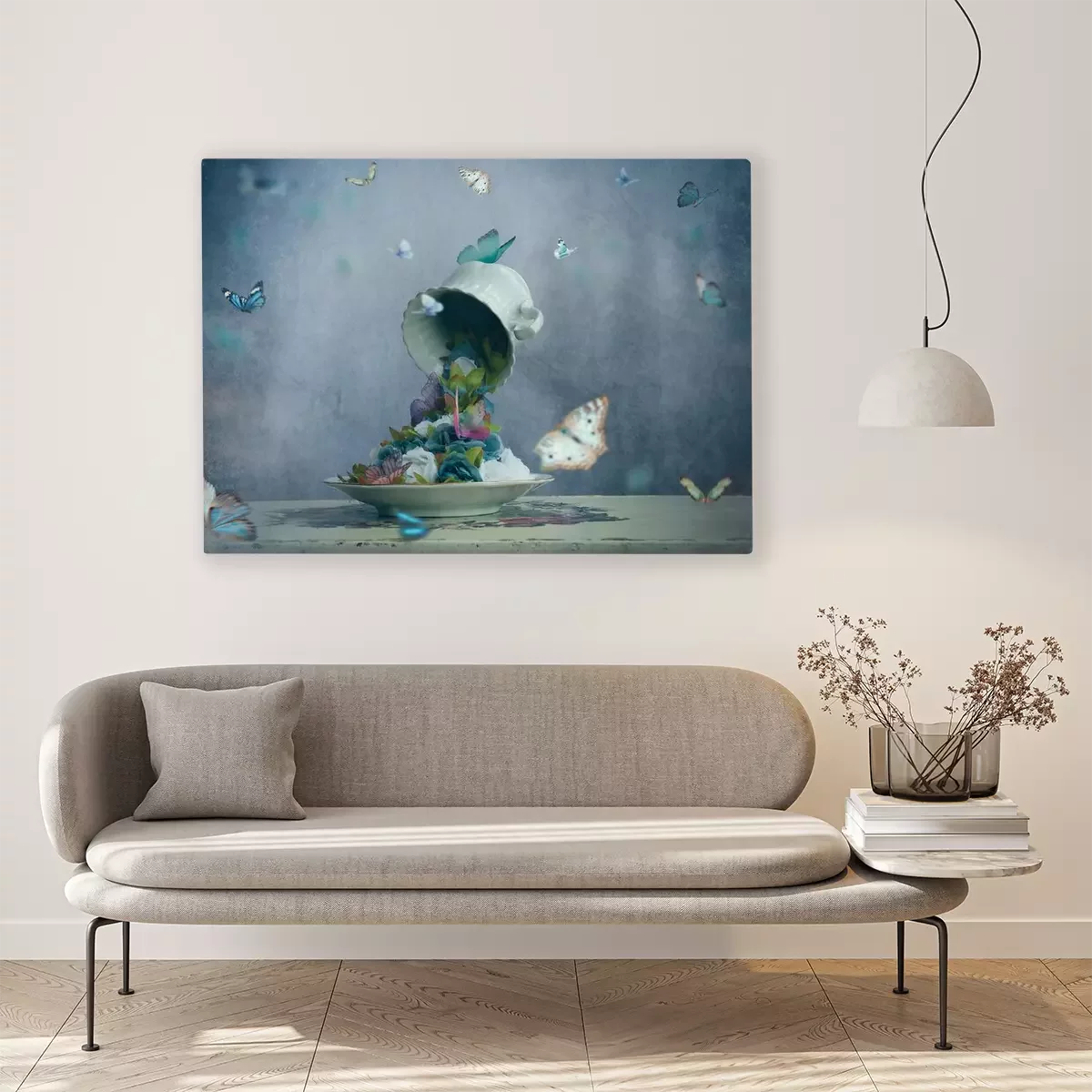 De print wordt aangebracht op hoogwaardig canvas dat op een schildersweefgetouw (spieraam) wordt gespannen. Omdat de print de zijranden bedekt, hoeft het ontwerp niet met een extra kader te worden omlijst. Wij raden ook composities aan die uit meerdere foto's bestaan en zo een coherente compositie vormen.