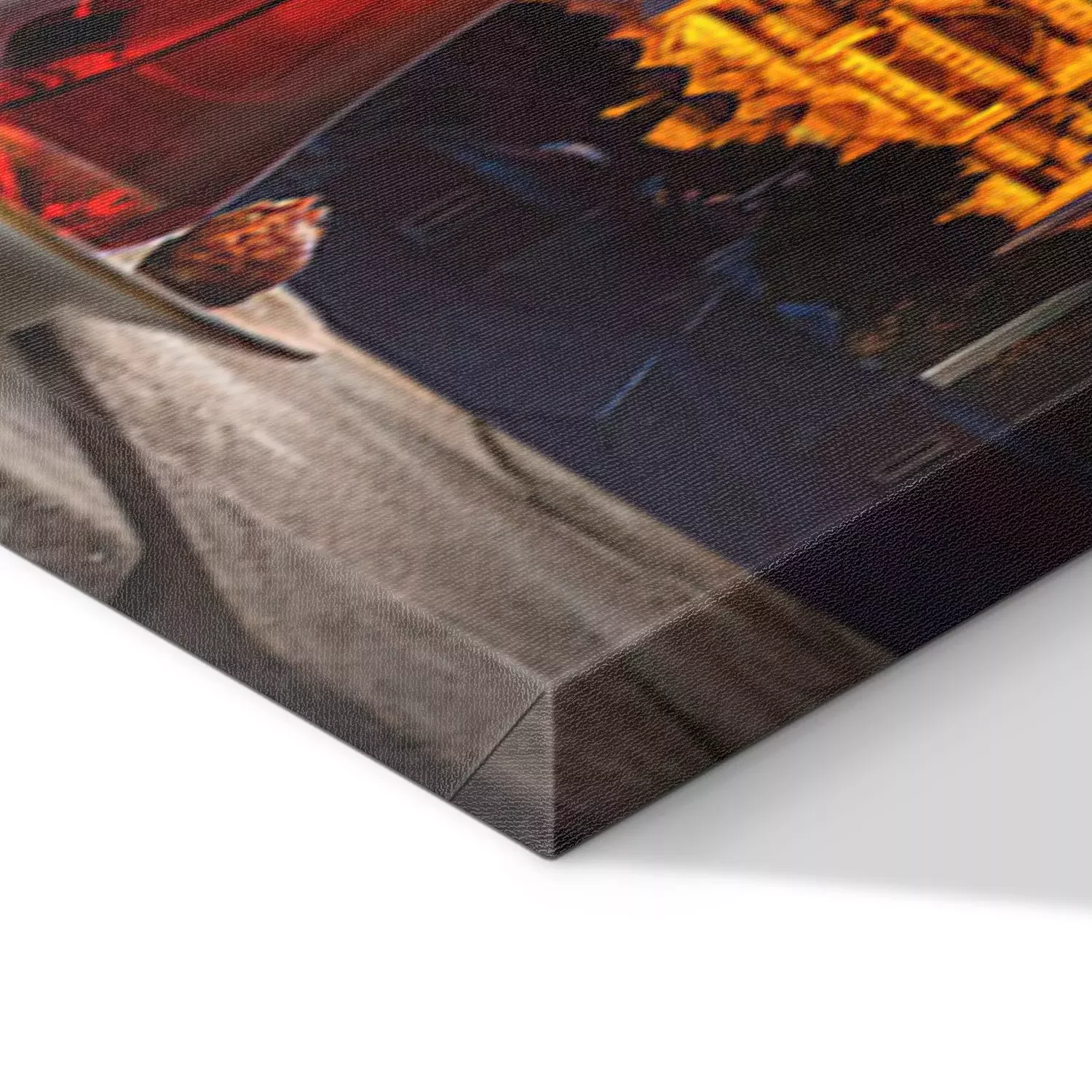 De print wordt aangebracht op hoogwaardig canvas dat op een schildersweefgetouw (spieraam) wordt gespannen. Omdat de print de zijranden bedekt, hoeft het ontwerp niet met een extra kader te worden omlijst. Wij raden ook composities aan die uit meerdere foto's bestaan en zo een coherente compositie vormen.
