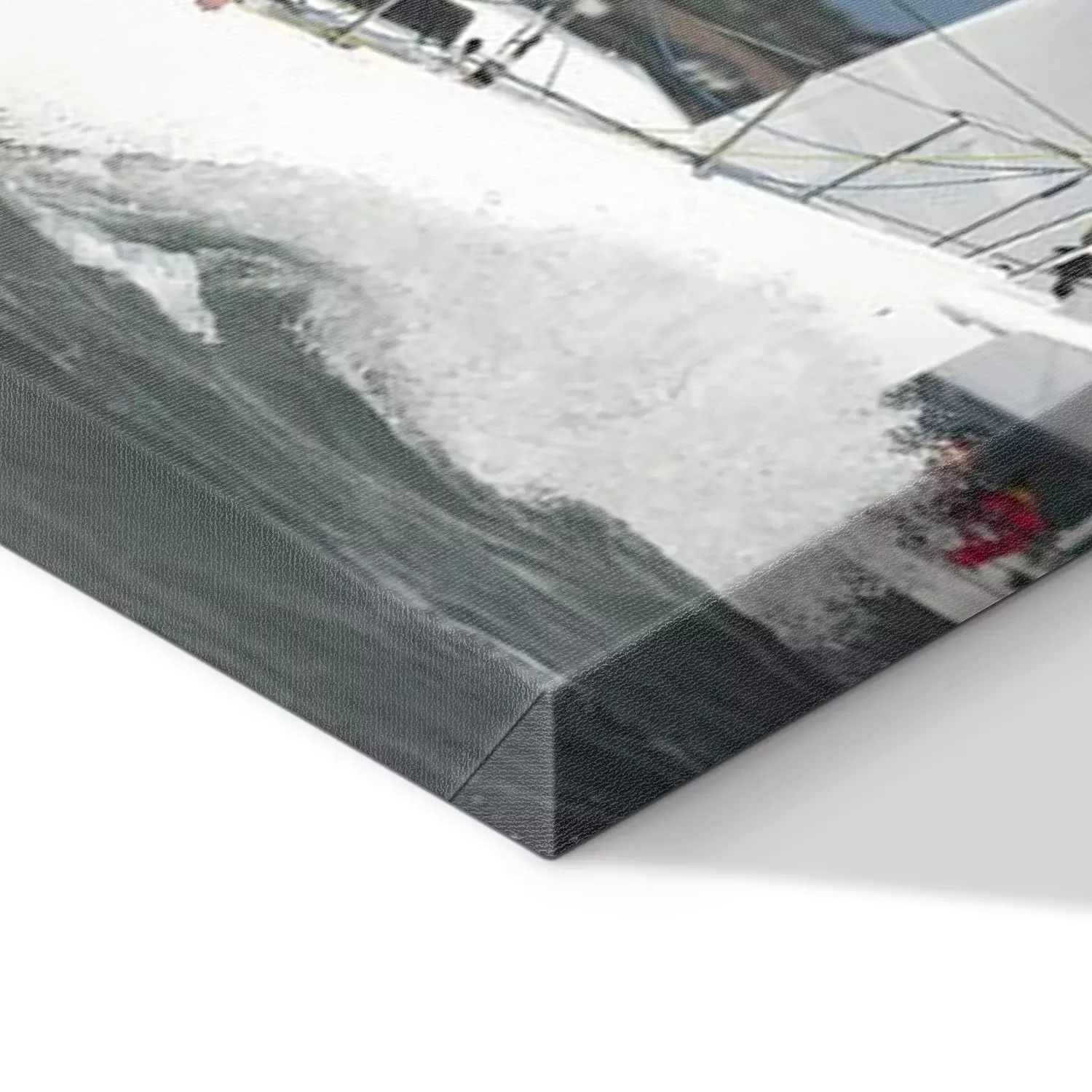 De print wordt aangebracht op hoogwaardig canvas dat op een schildersweefgetouw (spieraam) wordt gespannen. Omdat de print de zijranden bedekt, hoeft het ontwerp niet met een extra kader te worden omlijst. Wij raden ook composities aan die uit meerdere foto's bestaan en zo een coherente compositie vormen.