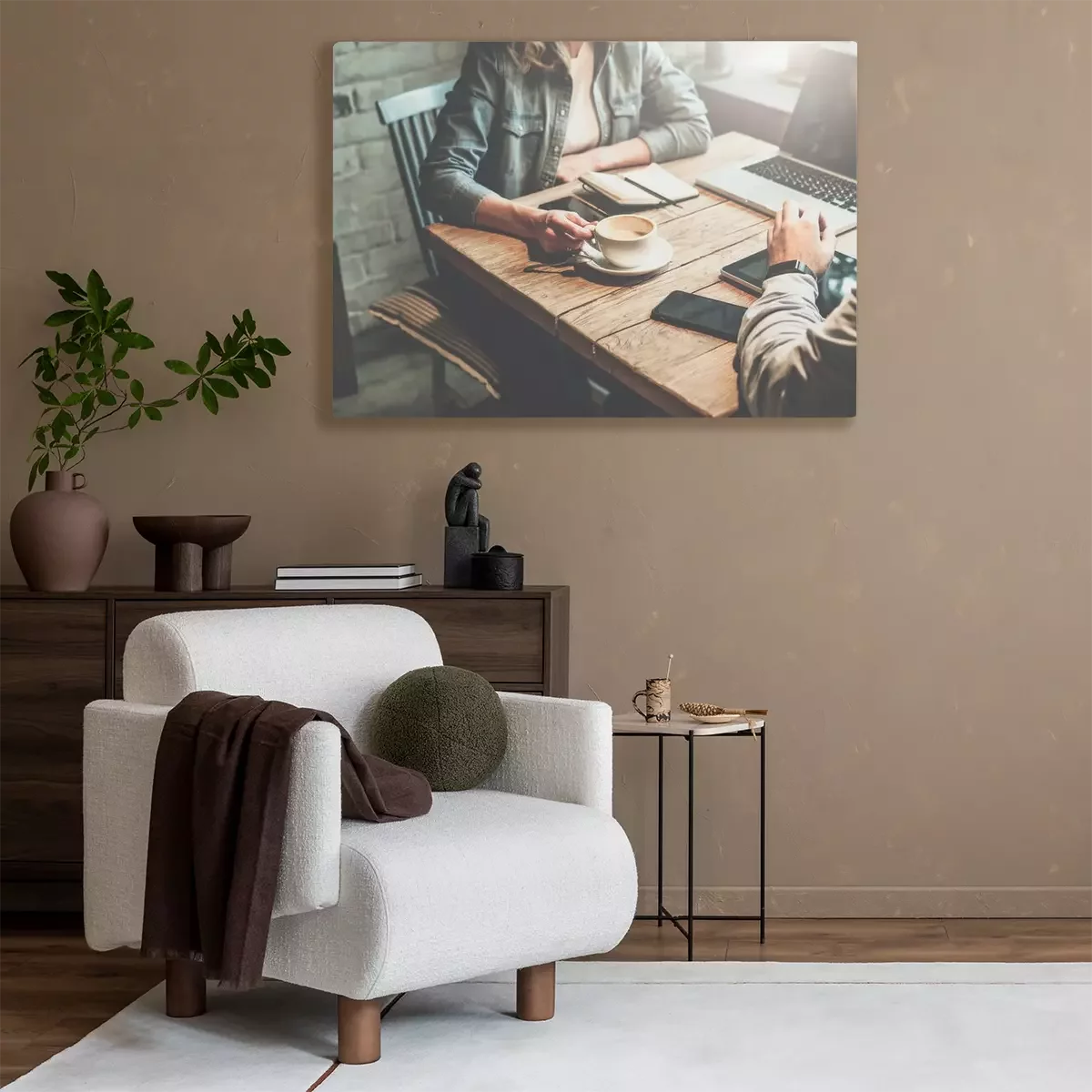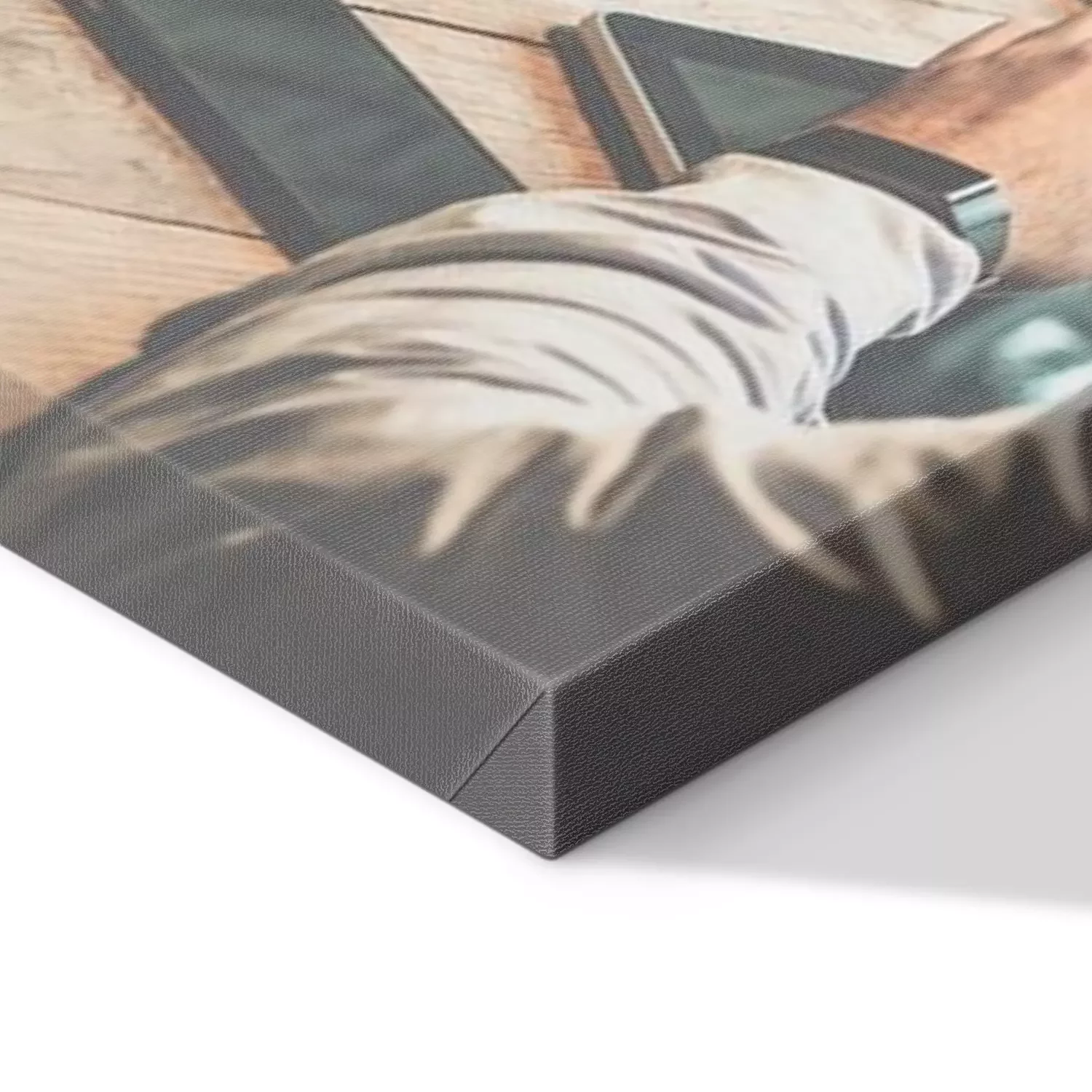 De print wordt aangebracht op hoogwaardig canvas dat op een schildersweefgetouw (spieraam) wordt gespannen. Omdat de print de zijranden bedekt, hoeft het ontwerp niet met een extra kader te worden omlijst. Wij raden ook composities aan die uit meerdere foto's bestaan en zo een coherente compositie vormen.