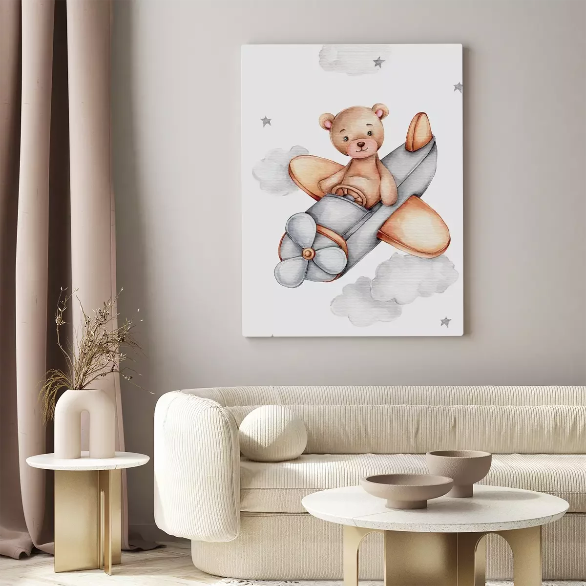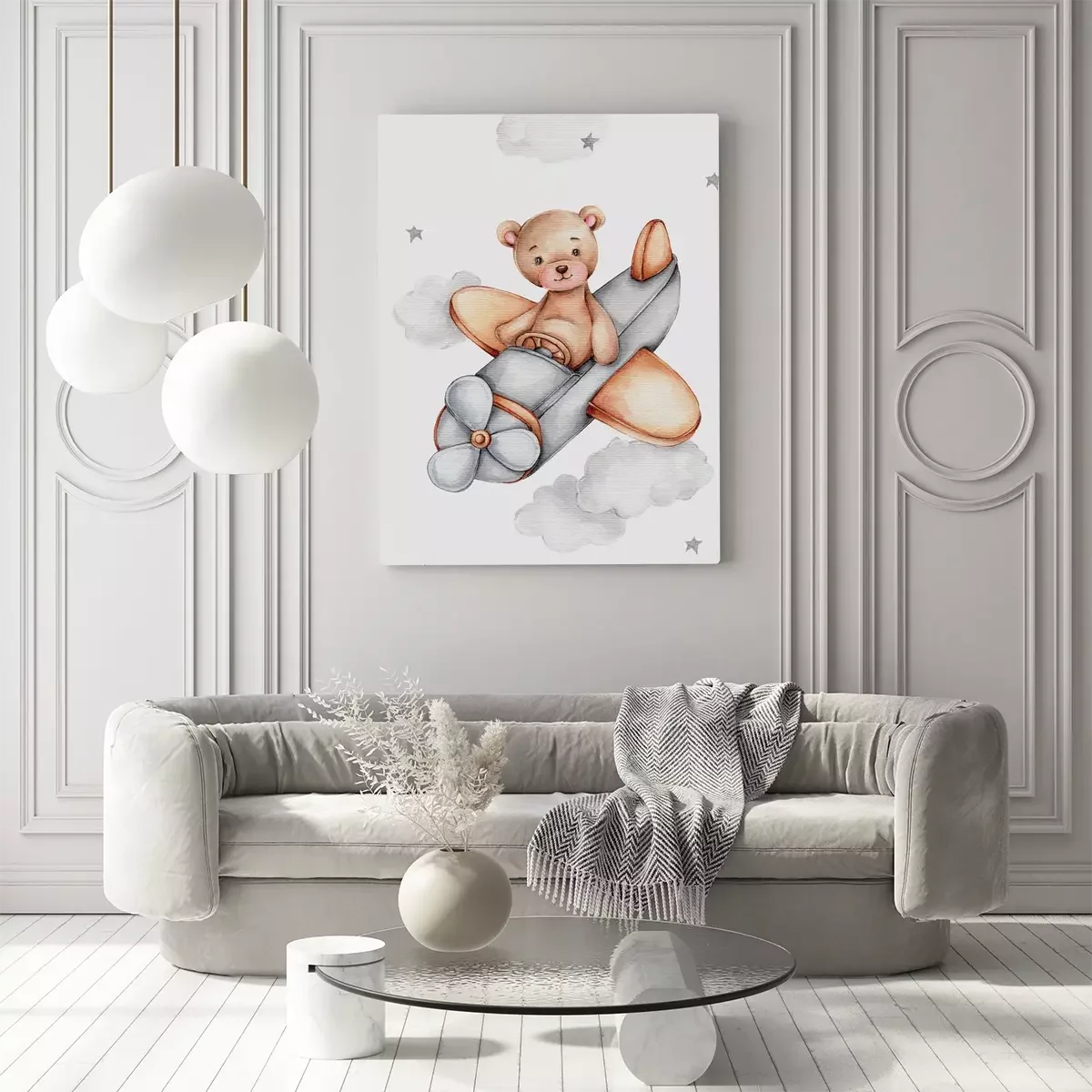 Teddybeerpiloot zweeft tussen de zachte wolken
