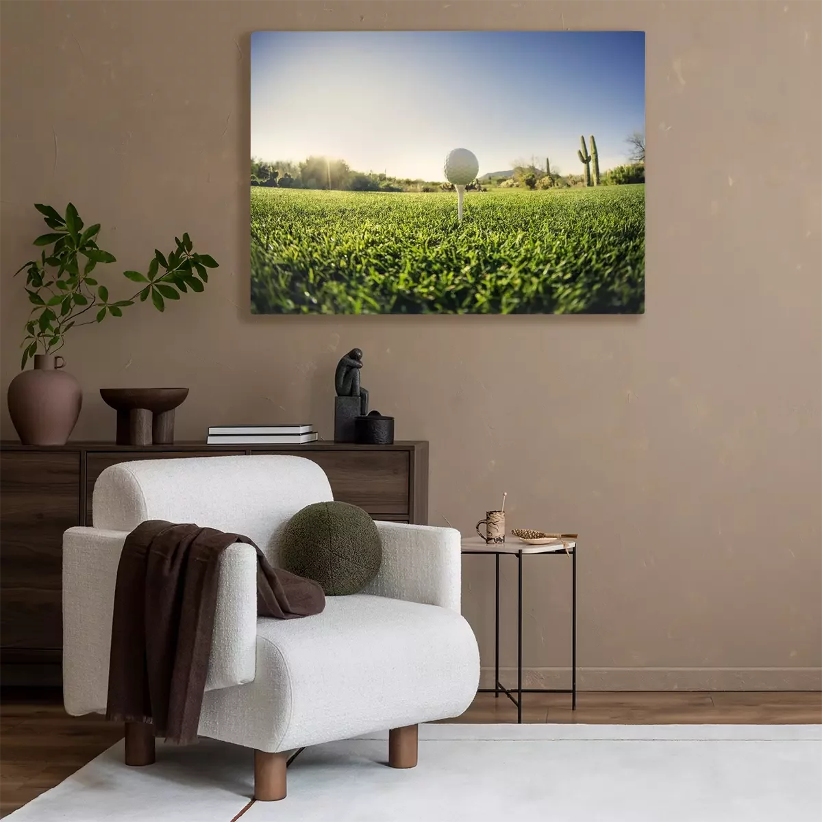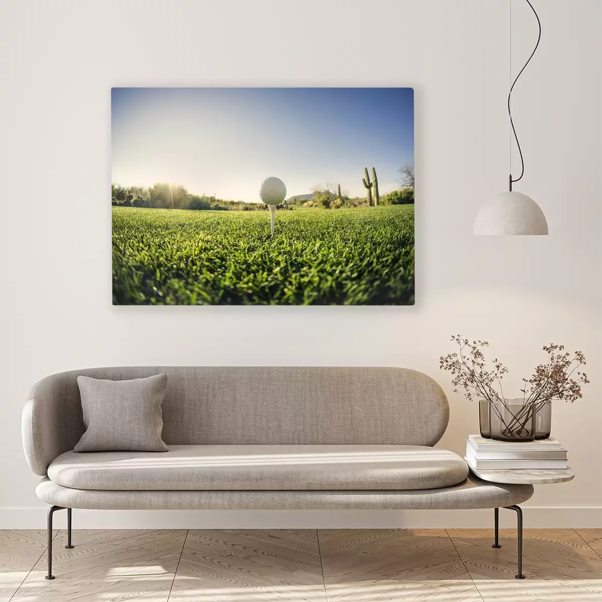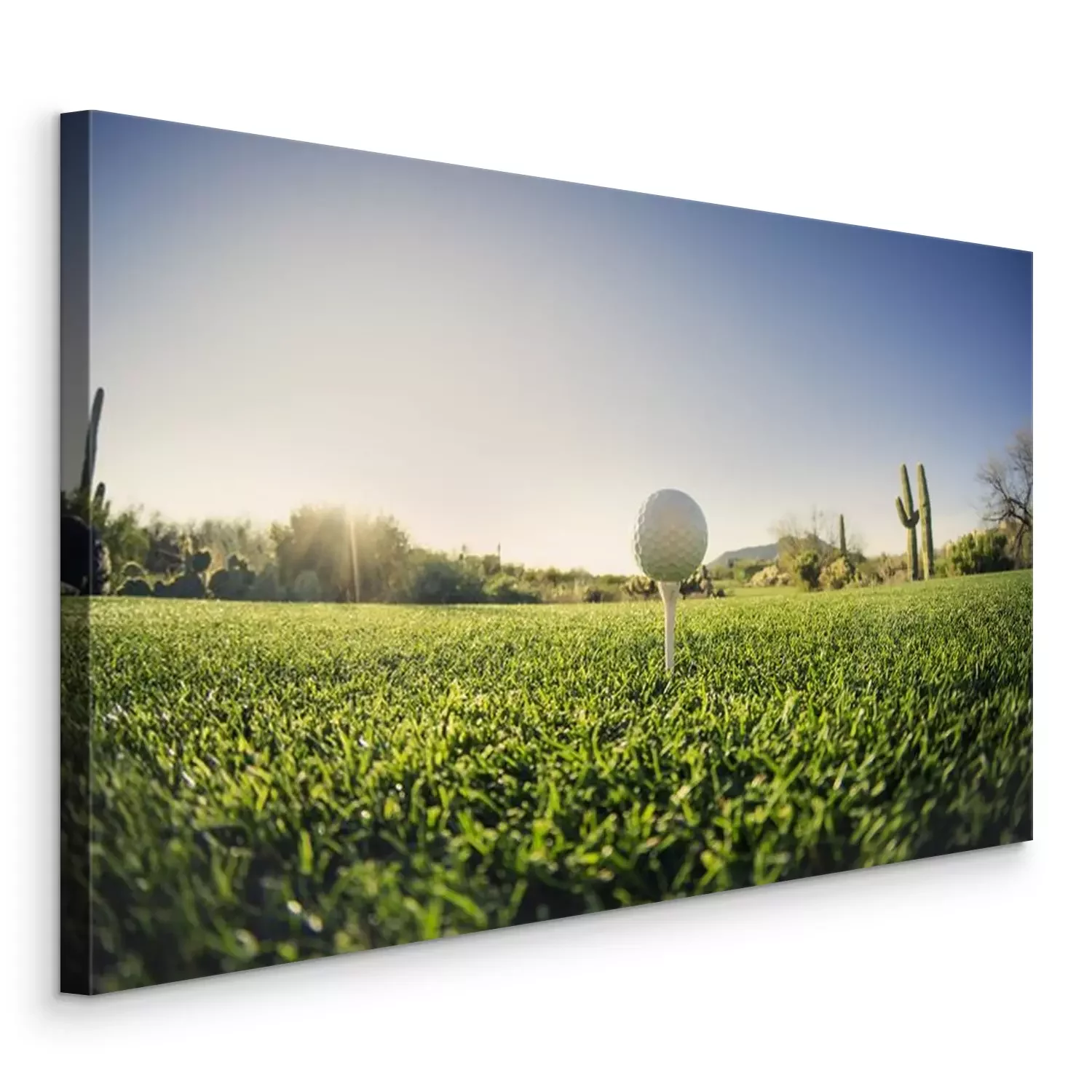 Canvas: Tee off - golfbal groothoek uitzicht Fisheye lens effect.