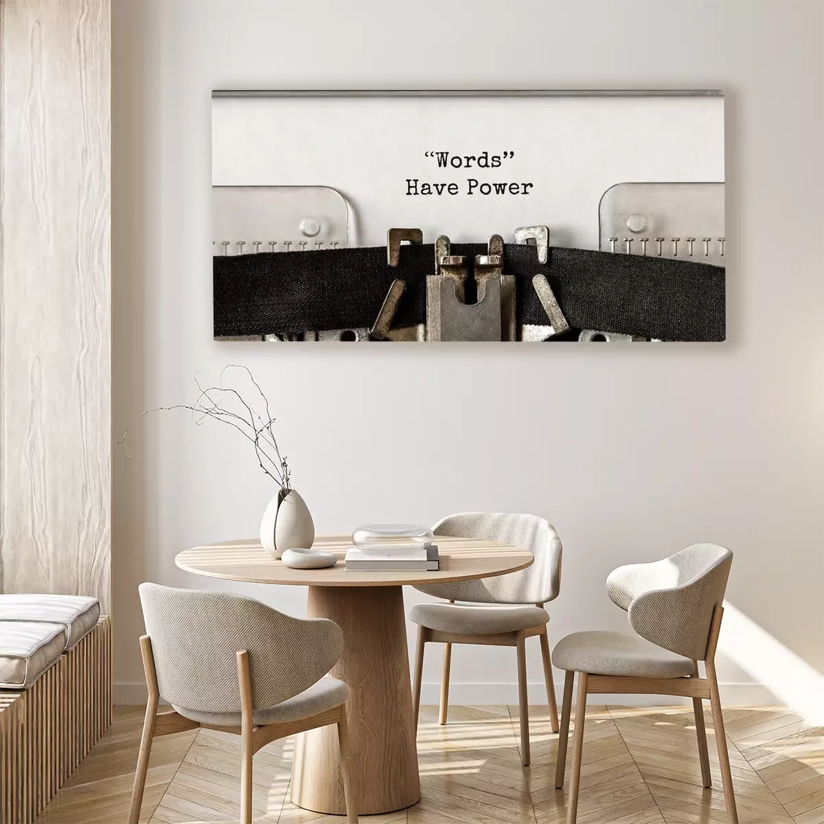 Canvas: Tekstwoorden hebben macht getypt op retro typemachine