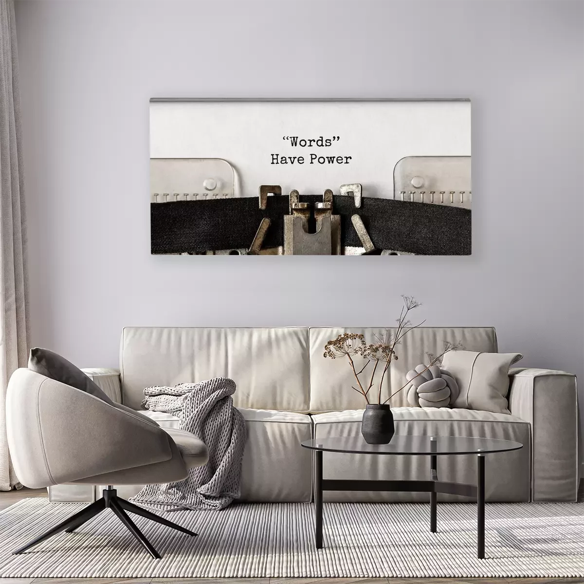 Canvas Tekstwoorden hebben macht getypt op retro typemachine