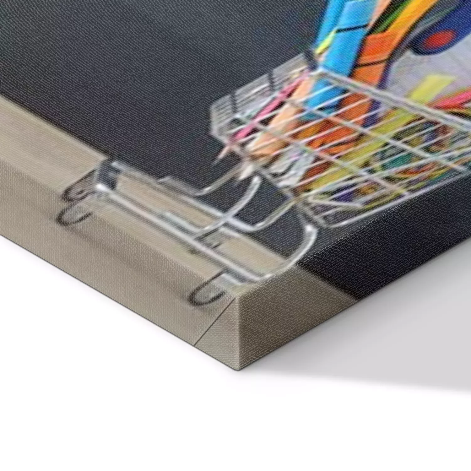 De print wordt aangebracht op hoogwaardig canvas dat op een schildersweefgetouw (spieraam) wordt gespannen. Omdat de print de zijranden bedekt, hoeft het ontwerp niet met een extra kader te worden omlijst. Wij raden ook composities aan die uit meerdere foto's bestaan en zo een coherente compositie vormen.