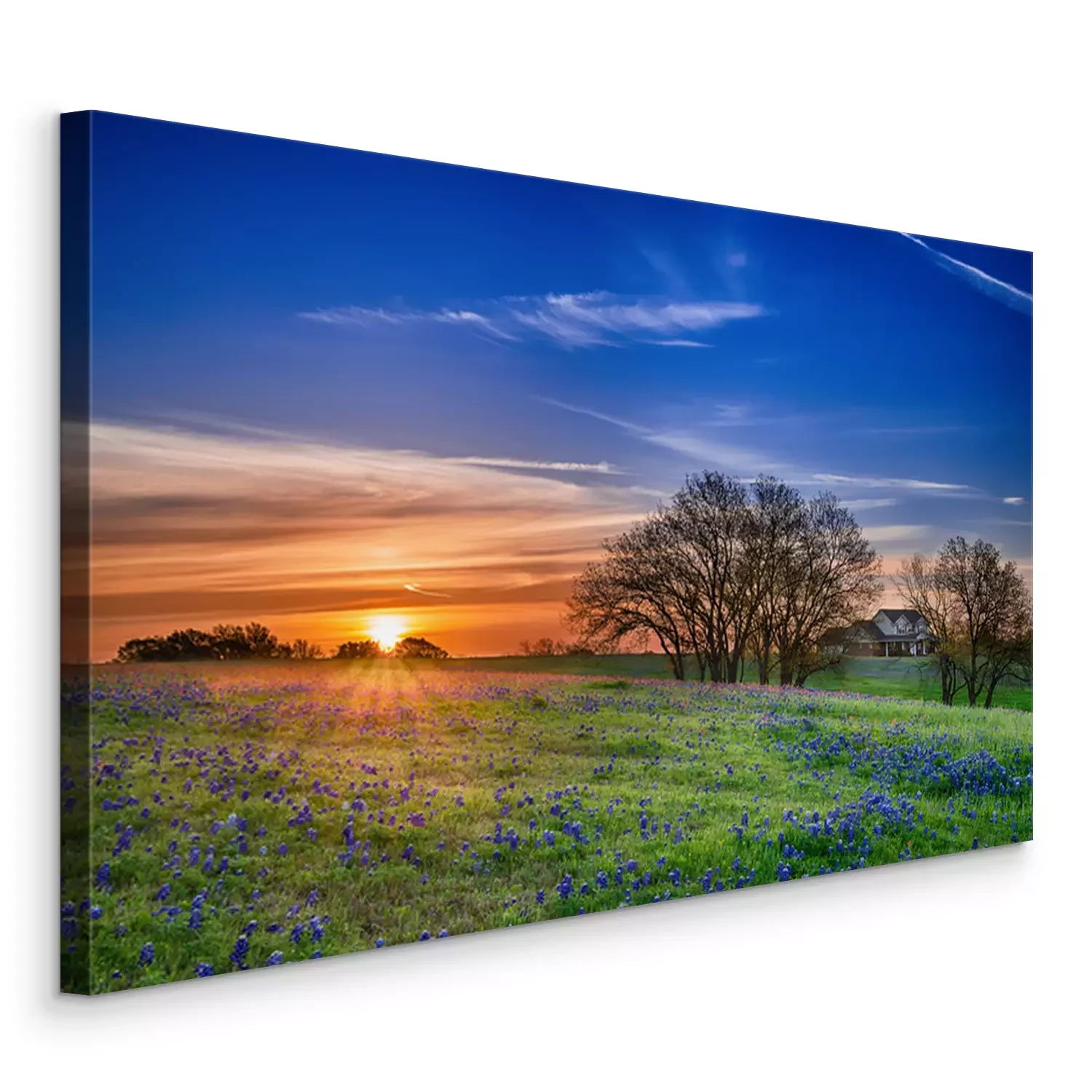 Canvas: Texas bluebonnet Wildflower lente veld bij zonsopgang