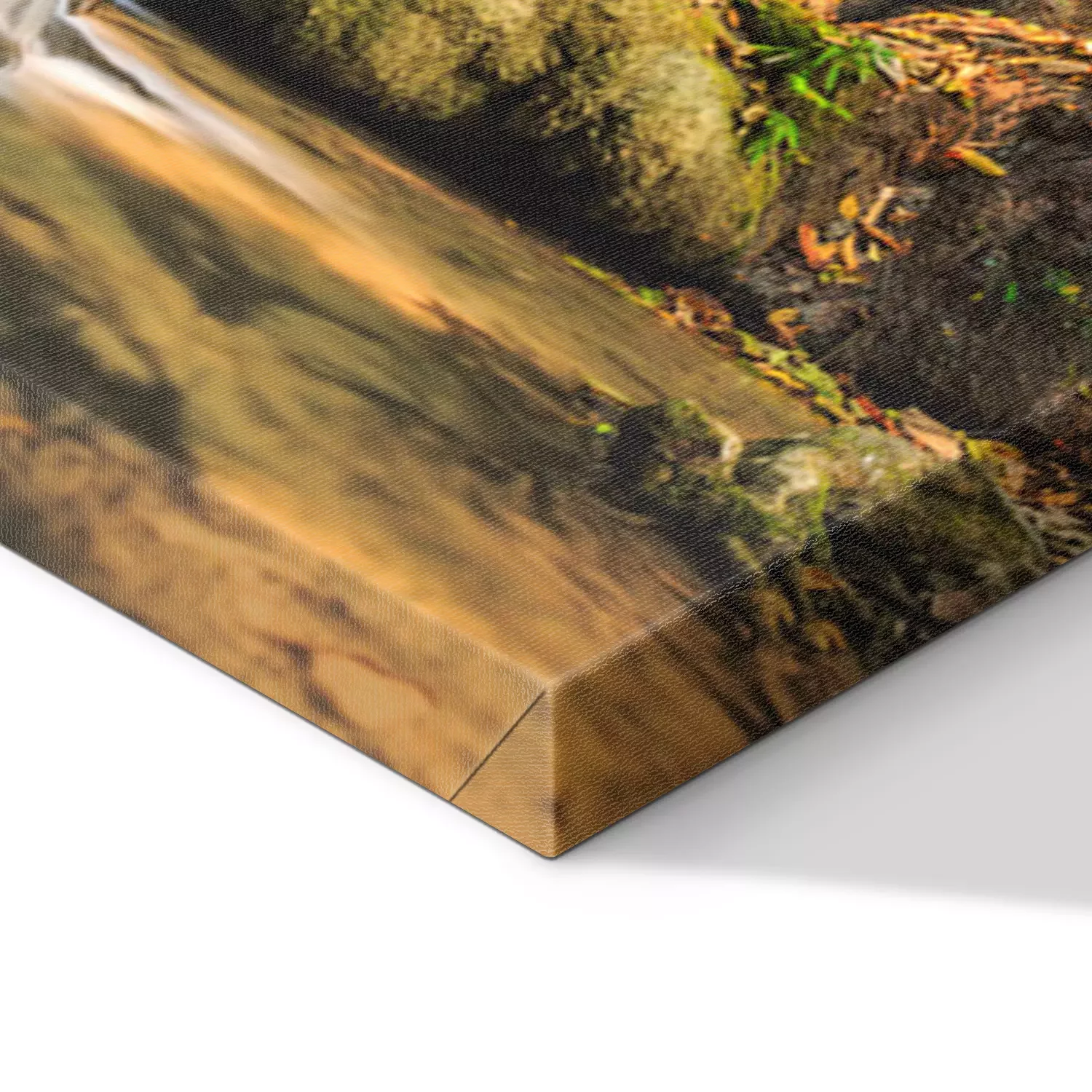 De print wordt aangebracht op hoogwaardig canvas dat op een schildersweefgetouw (spieraam) wordt gespannen. Omdat de print de zijranden bedekt, hoeft het ontwerp niet met een extra kader te worden omlijst. Wij raden ook composities aan die uit meerdere foto's bestaan en zo een coherente compositie vormen.