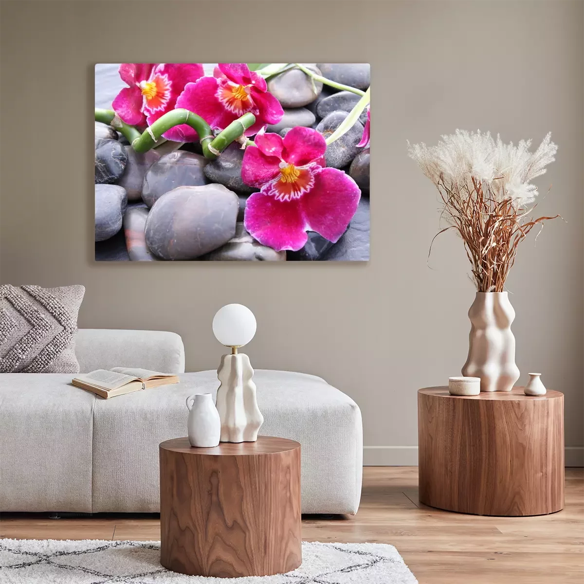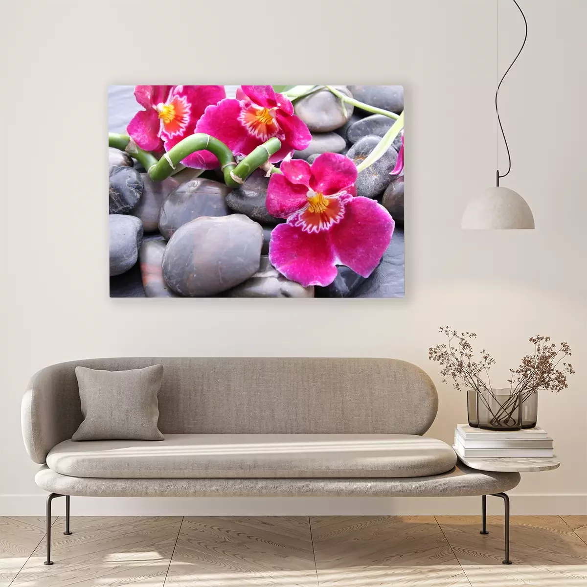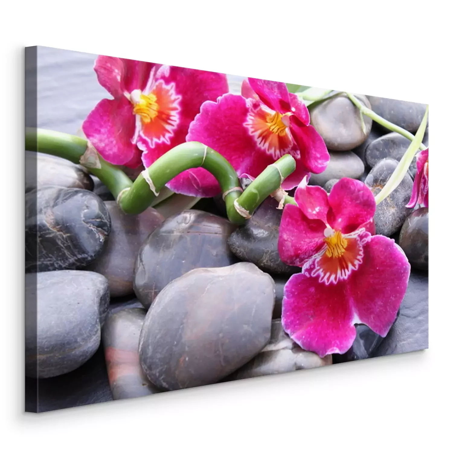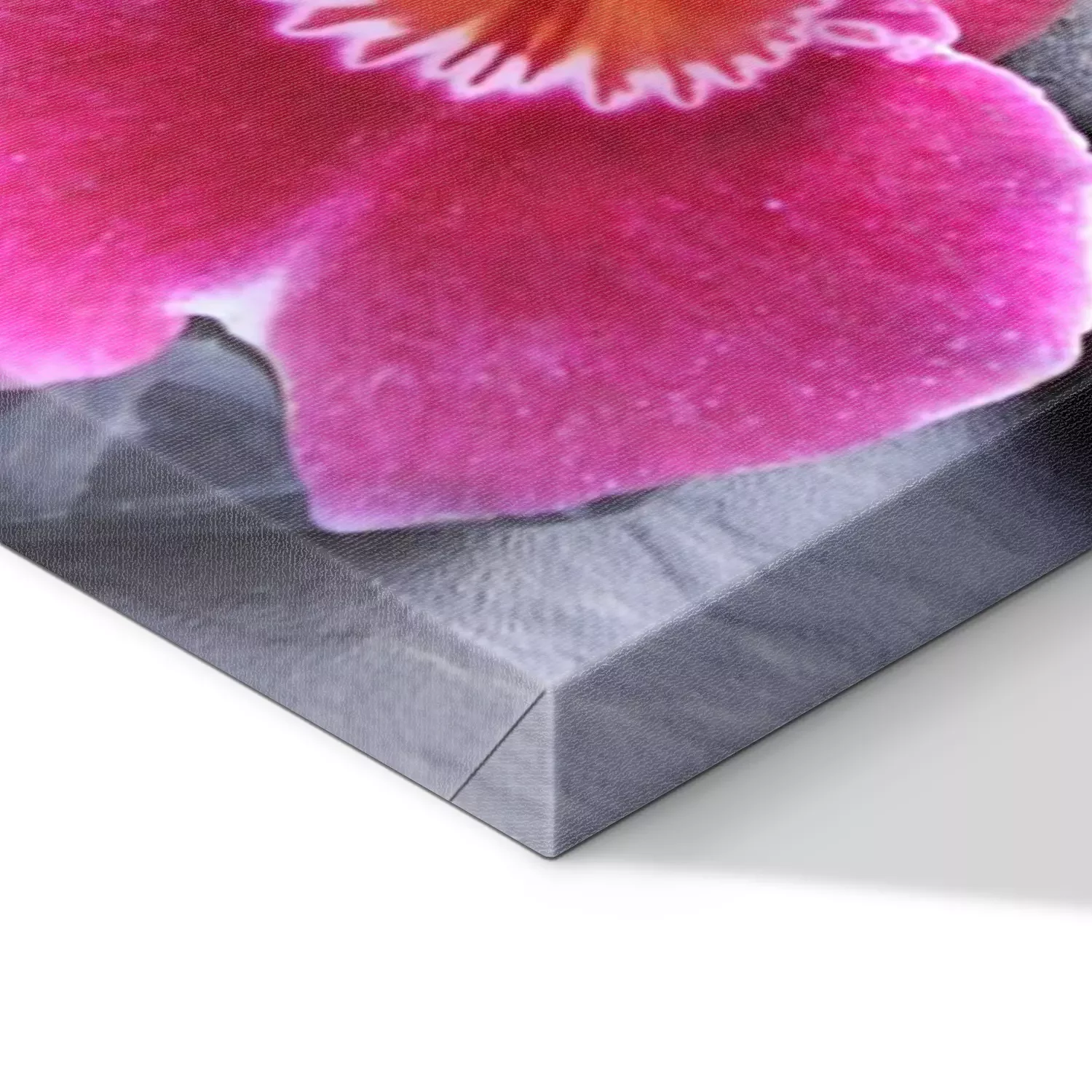 De print wordt aangebracht op hoogwaardig canvas dat op een schildersweefgetouw (spieraam) wordt gespannen. Omdat de print de zijranden bedekt, hoeft het ontwerp niet met een extra kader te worden omlijst. Wij raden ook composities aan die uit meerdere foto's bestaan en zo een coherente compositie vormen.