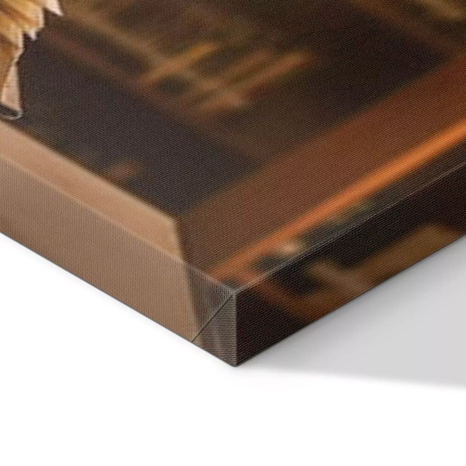 De print wordt aangebracht op hoogwaardig canvas dat op een schildersweefgetouw (spieraam) wordt gespannen. Omdat de print de zijranden bedekt, hoeft het ontwerp niet met een extra kader te worden omlijst. Wij raden ook composities aan die uit meerdere foto's bestaan en zo een coherente compositie vormen.