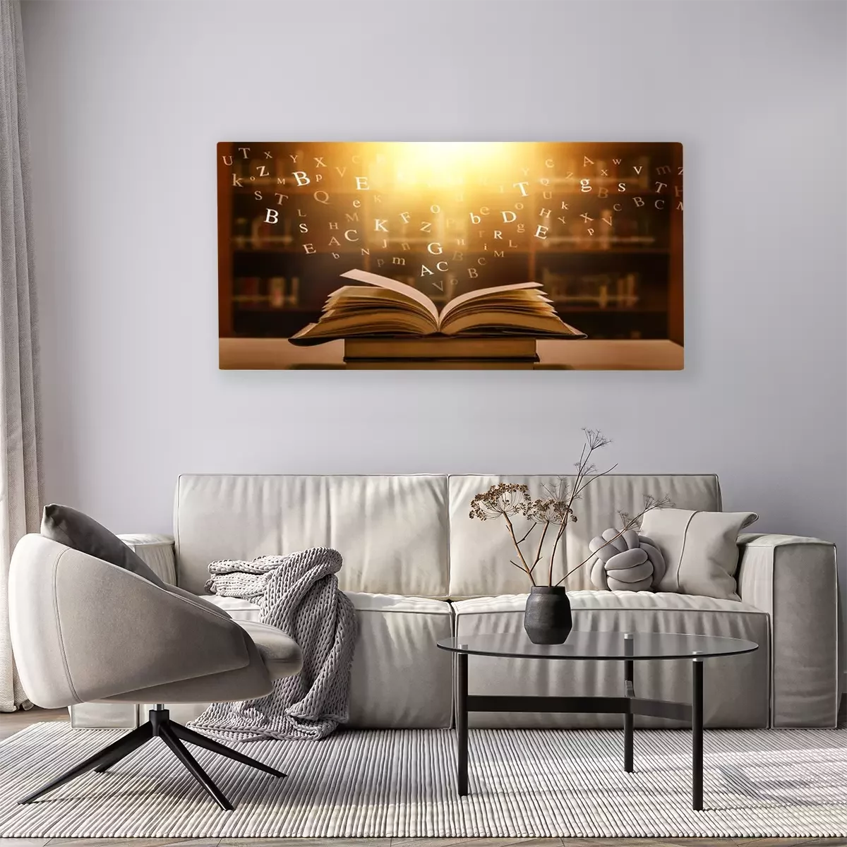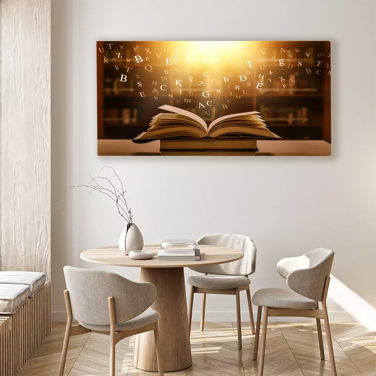 Canvas 	 The concept of education by planting a tree of knowledge in the opening of an old book in the library and the magical magic of light that flies to the destination of success. Beautiful background